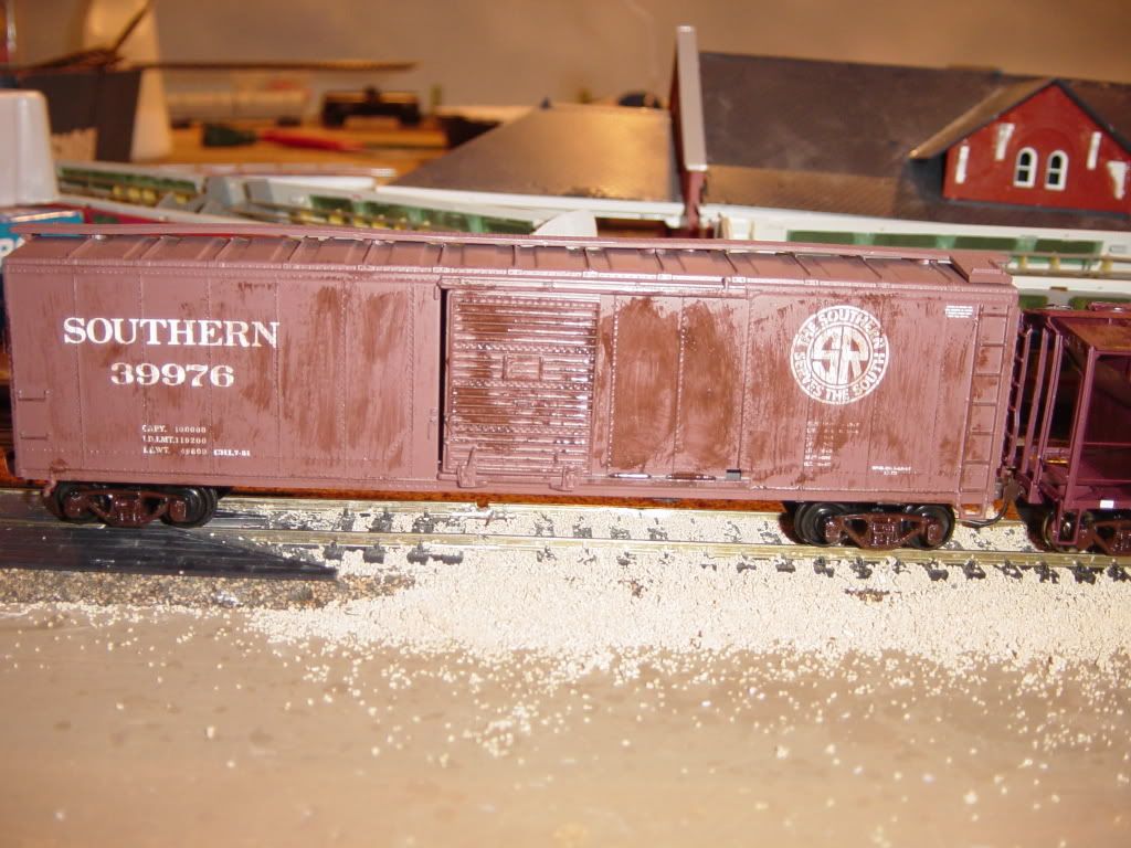 Bragdon Enterprises makes a terrific selection of adhesive weathering chalks in just about any ‘weathering’ color you could imagine. Once they’re on, they’re ON, though you can shade them pretty well. I haven’t used them on any freight cars–yet (mainly because I’m a little leery of weathering cars), but I use them on my locos, and also use them to help bring out highlights on my rock scenery. If you’re a little leery of ‘painting on’ your weathering, I think this product might be just what you’re looking for. It goes on really well just using a Q-Tip.