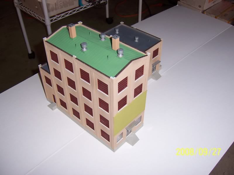 Used the “3-In-1” kit, which I highly recommend. I added some extra wall sections to make it taller. There’s been a lot of posts on these and I just thought I’d give it a whack. Enjoy, but don’t ask me where the design came from, it just kind of “evolved”. I can tell you that the roof color idea came from Joe’s Crab Shack!!!