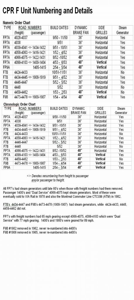 Here is some handy info on all CPR FP7 and FP9 numbers and details