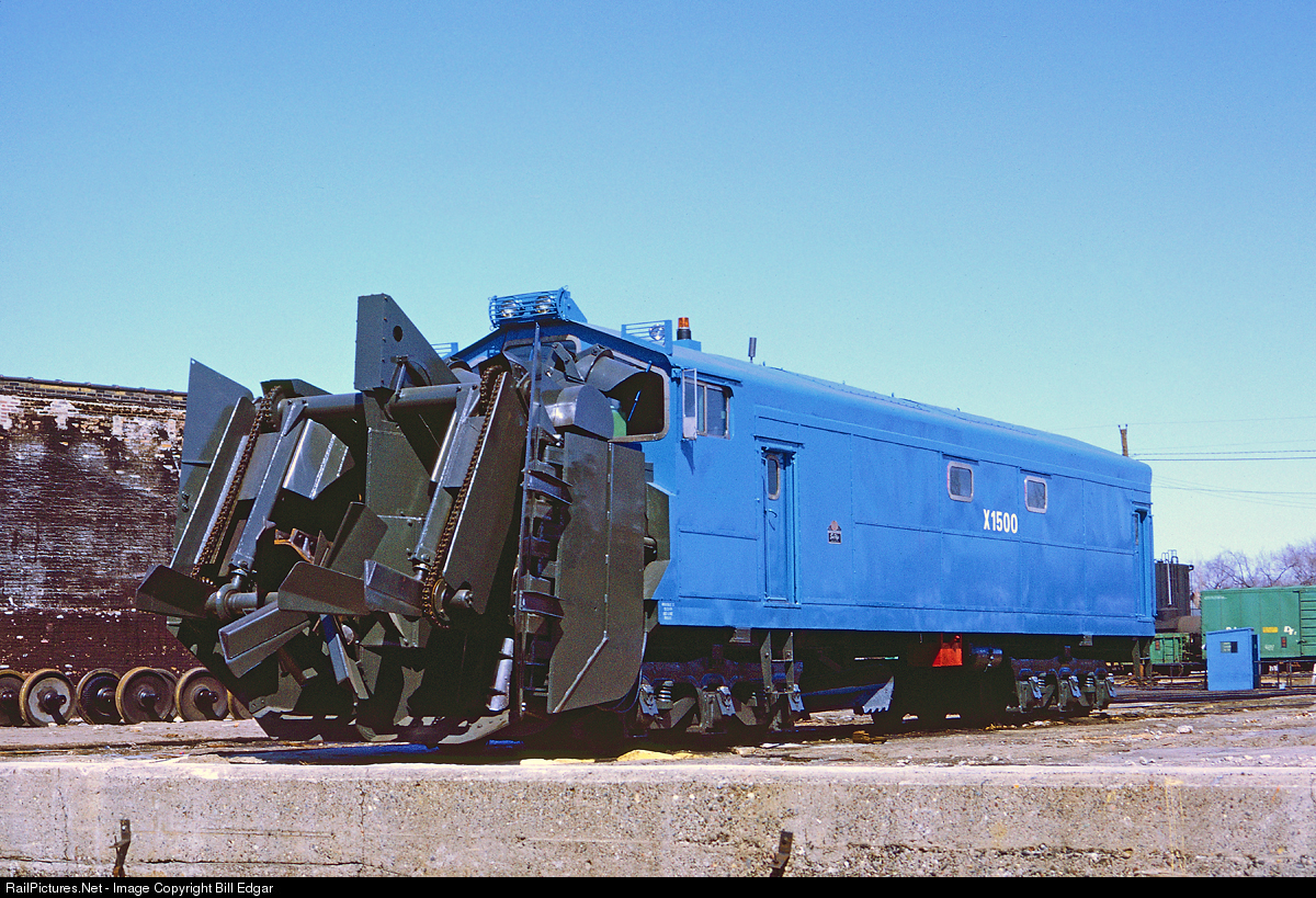 Note the single chute and spout attachment rather than the two directable spouts on the Conrail unit; that is a factory option. Note that the reason for the two spouts is that the heads can be extended outboard to cut wider with multiple passes.