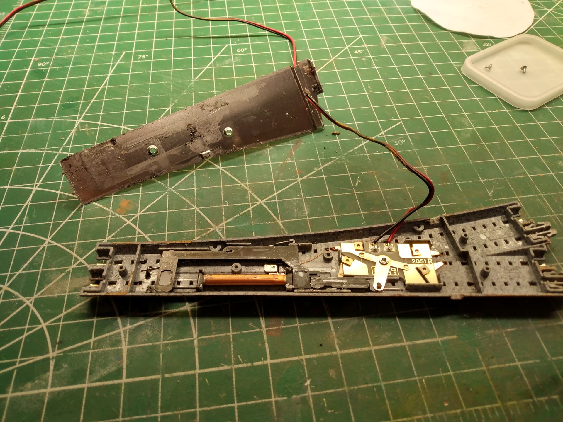 As for my first test, I plan on removing the ballast, taking up the turnout, open it, thoroughly clean it, and see if I can resurrect it.