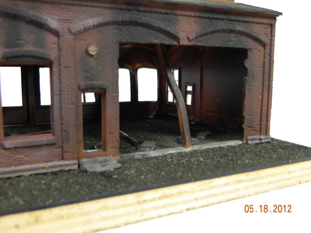 I have a habit I guess most modelers have, not throwing anything out if it has any possible use in the future. I just finished this model (see photo) and needed something to look like dirt/cinders/ashes on the floor and ground of this burned out structure. I had a bottle of ‘dirt’ that I saved from the floor sander that my dad used to ‘level’ the asphalt?? whatever kitchen floor in our house in NY back in the late 1950’s to early 1960’s (don’t remember what year but I graduated HS in 1959?). I saved a paper bag of this stuff thinking I could use it on our American Flyer layout. Fifty some years later I finally had ‘the project’ I was saving it for. Really worked great and I still have some left for another future project.