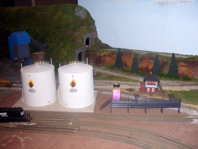 Thanks. I’ve decided to go with concrete (stryene) for now. I used .125" x .25" for the berms. It ends up only being 21" scale height, not nearly as high as those monsters that come with the kit. I also picked up some 3/32" brass tubing and plan to cut it at 1.5" long, drill a hole in the top of the tank, stick the tubing just into the hole and wire red LEDs into the other end for airplane marker lights. It looks like it will work fine. My next problem is the positioning on my layout. My original position was next to the small town on the layout but I found another place, which fits better, but is close to my coal mine. The advantage here is that I have a litle more space and I can have the loading racks next to the storage tanks on a siding which holds 4-5 tank cars. The other option is closer to the town. The advantage here is that it doesn’t detract from the coal mine and the siding track is much longer. I’ll try to post a couple of pictures later today with the storage tanks sitting in position and maybe folks can provide some feedback.