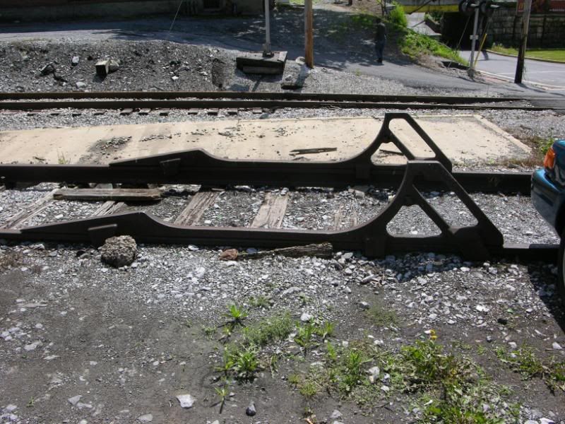 They are located on a deadend siding near the roundhouse in Martinsburg, WV. They are marked The Friction Car Stop, Cleveland Ohio. They are made of heavy steel and seems like they raise the whole truck wheel and all before they reach the stop. I would really appreciate and information anyone has on these. Sorry for the poor quality of the picture I have others if needed as it is a bad area to be in and I was in a hurry.