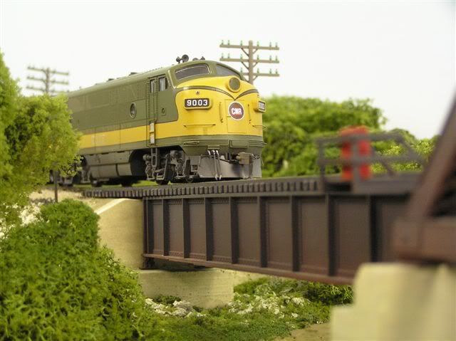 What I did is i first airbrushed a coat of grimy black with a couple drops of the rust color over everything to knock down the shine of the plastic ties (atlas code 100) I then masked off (1/4" masking tape bought at an art supply store) the ties, leaving the tie plates and spikes showing and airbrushed a rust color over teh grimy black I had already applied. I also did it heavy in some spots and very little in other to show a variation in the rust (especially near the water tower). I then removed the tape and voila,rusted rails and croesoted ties.