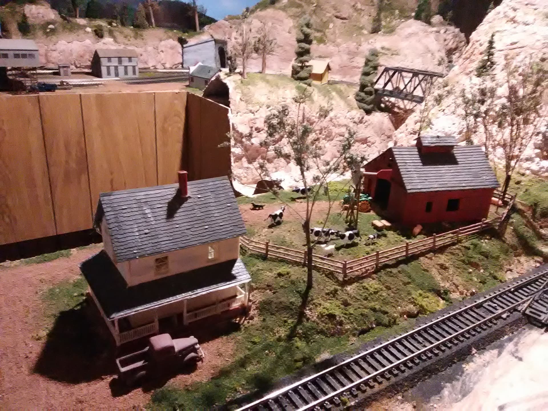 With the ground goop I love how you can place details and they are glued in place. In this scene which is on a tilt up lift up hatch only the buildings and the vehicles were glued down the rest was pressed in. Only had to glue one cow back in 7 years. The farm part of the scene was actually done by our youngest son when he was 12.