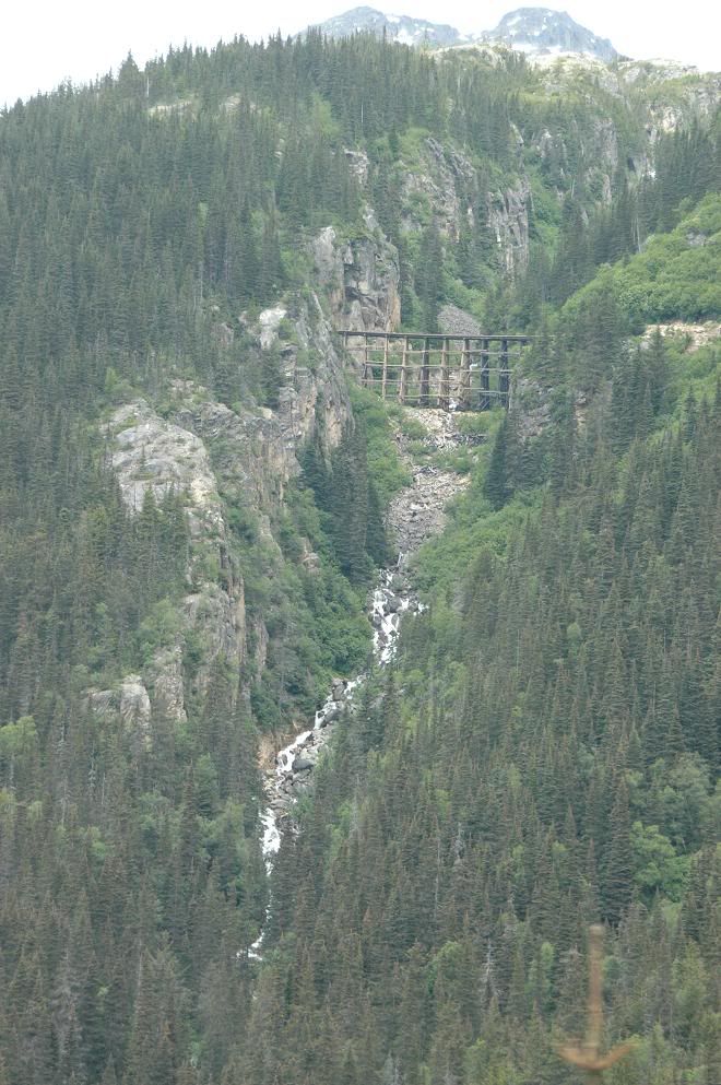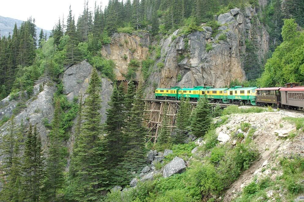 Hey! I was there too on July 1st! I took about a jillion digital photos, same gray skies too. We arrived on the cruise ship MS Volendam out of Vancouver, B.C. I was lucky to see their steam train in operation, although it wasn’t the one we were on. It left before we did on the shovel-nosed diesel train. Here’s one of my shots:
