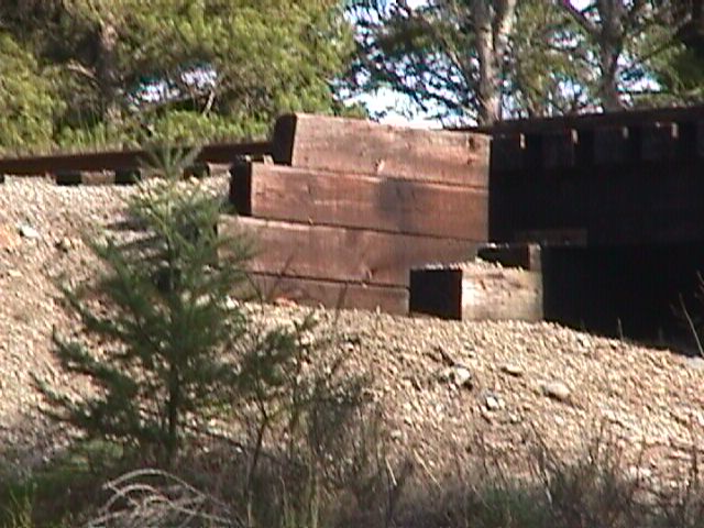You are right with the bulwarks consisting of large size(usually square) lumber laid horizontally, I did see one bulwark made from used telephone poles, sometimes the wall was vertical, others were vey slightly sloped into the hill and timber was recessed like small steps. Other types were a few piles vertically with heavy lumber behind (the dirt side) and the roadbed piled against the boards at each end, sorry I have no photo.