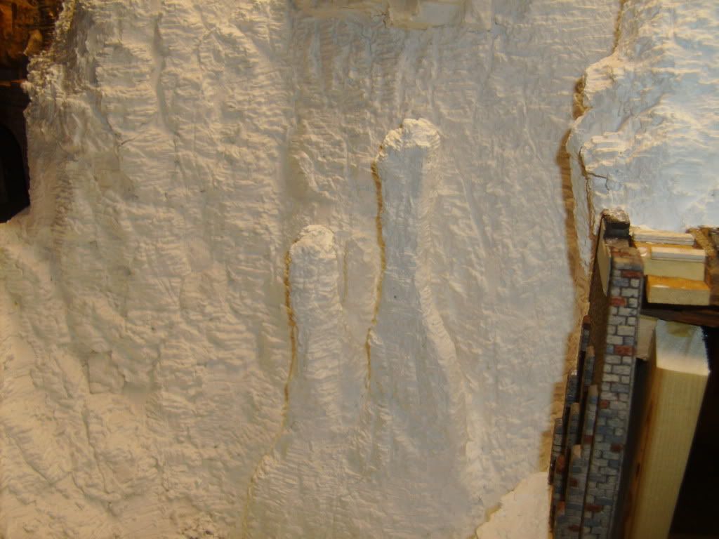I just use a single layer of plaster cloth on my layout. I do brush a thinned layer of plaster of Paris over that. I add a little vinegar to the plaster mixture to add working time. This layer gives more strength for the rock castings I’ll add later, plus it seals the little holes left afterwards. As was mentioned earlier, wash out the brushes immediately after using. And I HAVE pounded out any dried plaster with a hammer, too (“Oh, rats! I forgot to clean out the brush”).