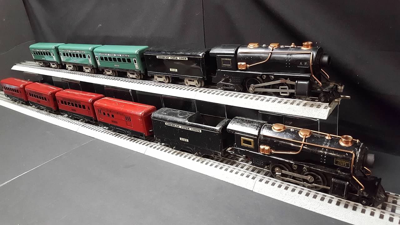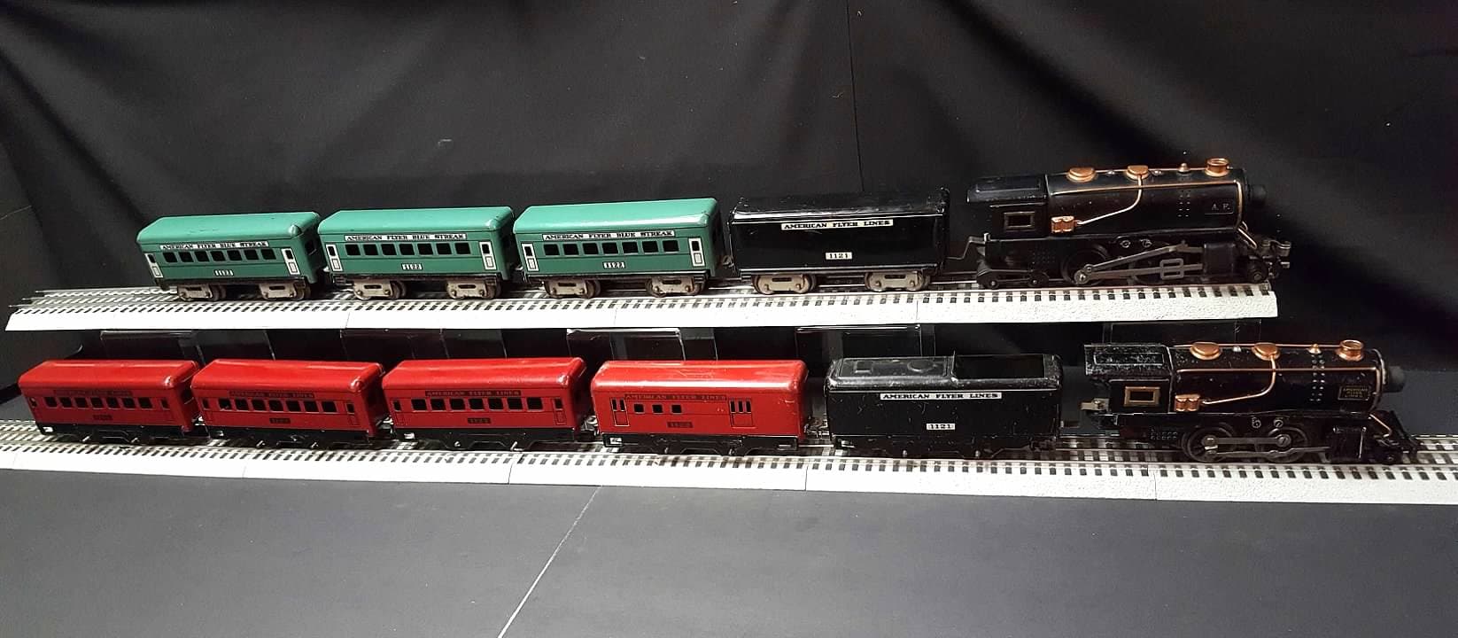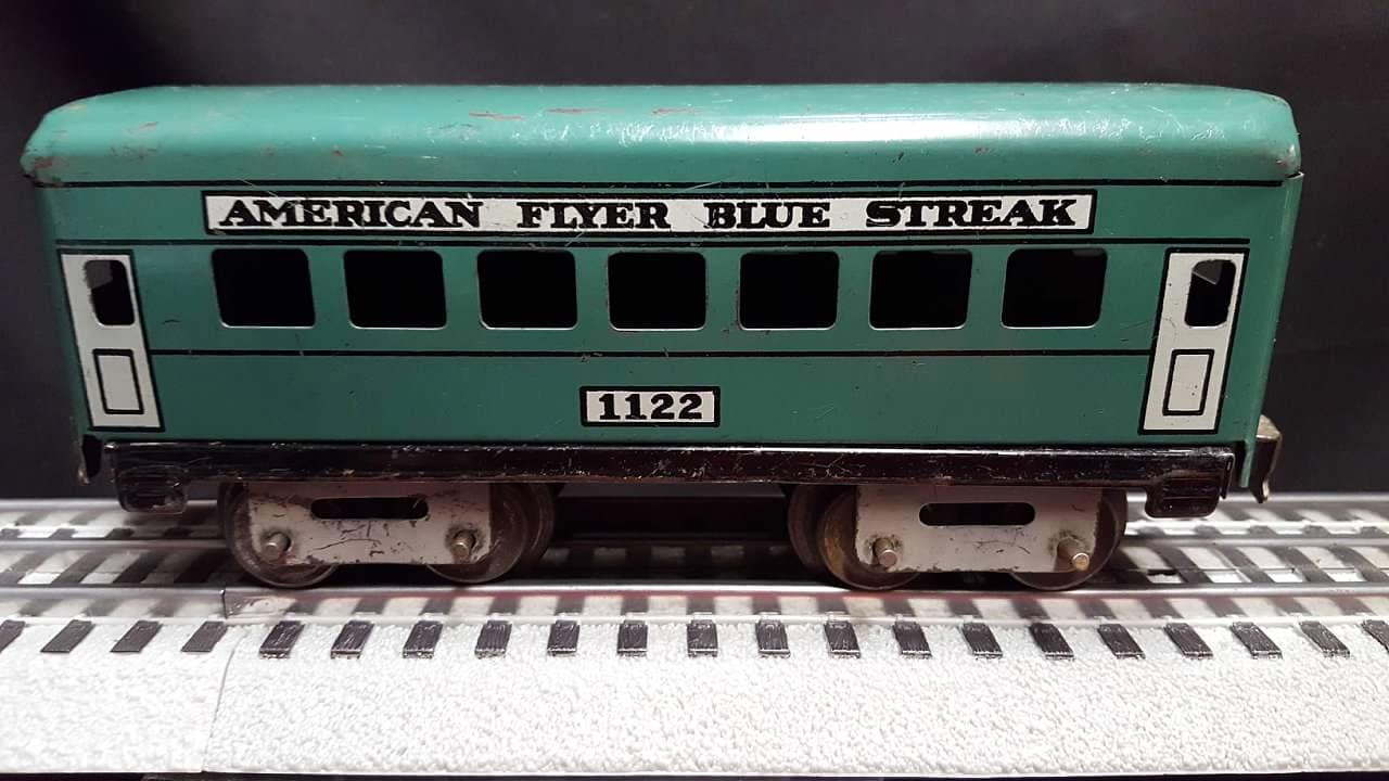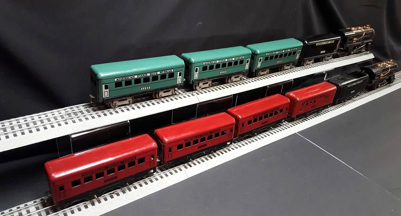 Here are some additional photos of the Champion Line passenger cars. I matched them up with appropriate Flyer sized engines. There is one set that has them headed up by a sheet metal Hiawatha with the mechanical whistle.