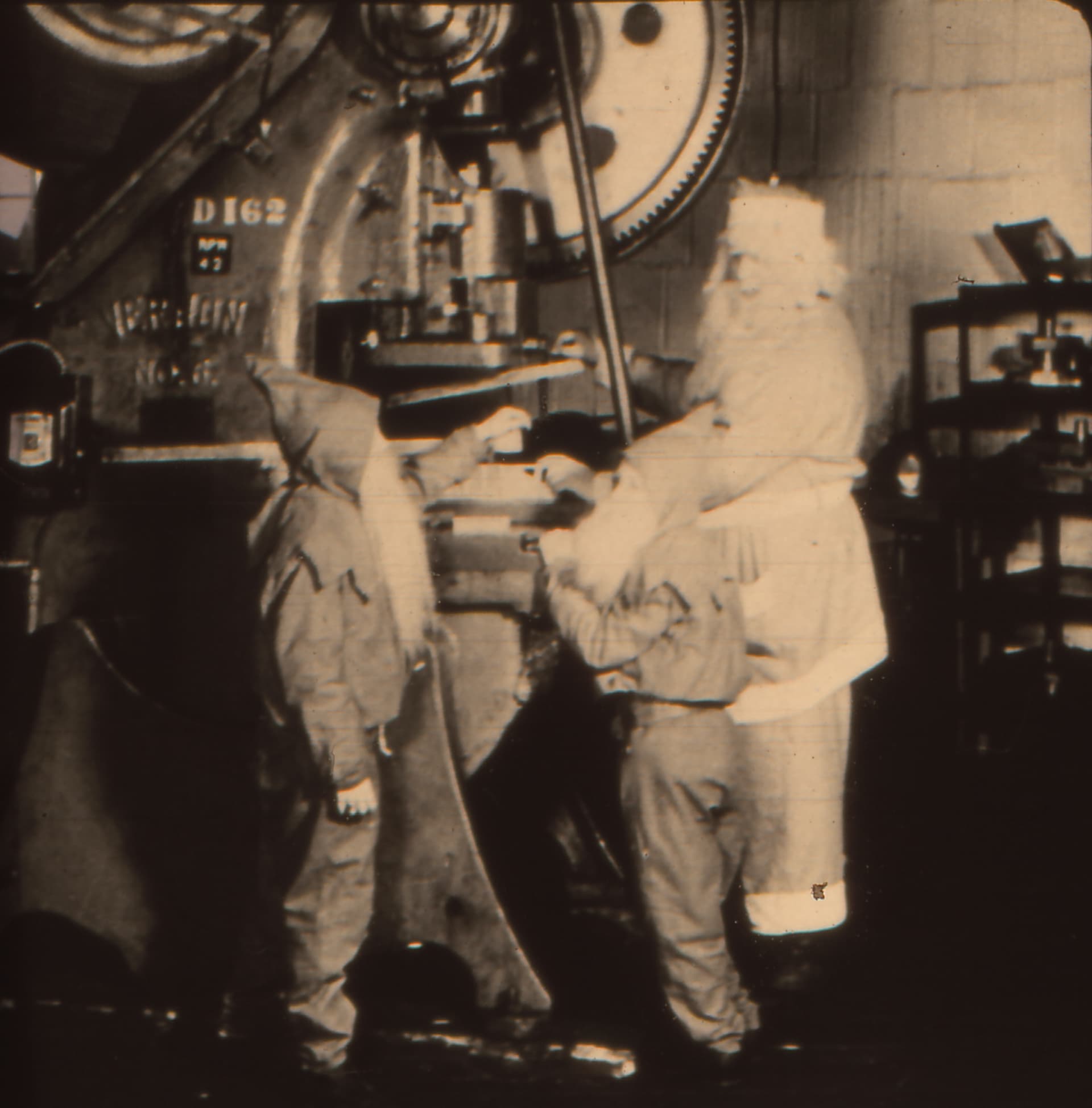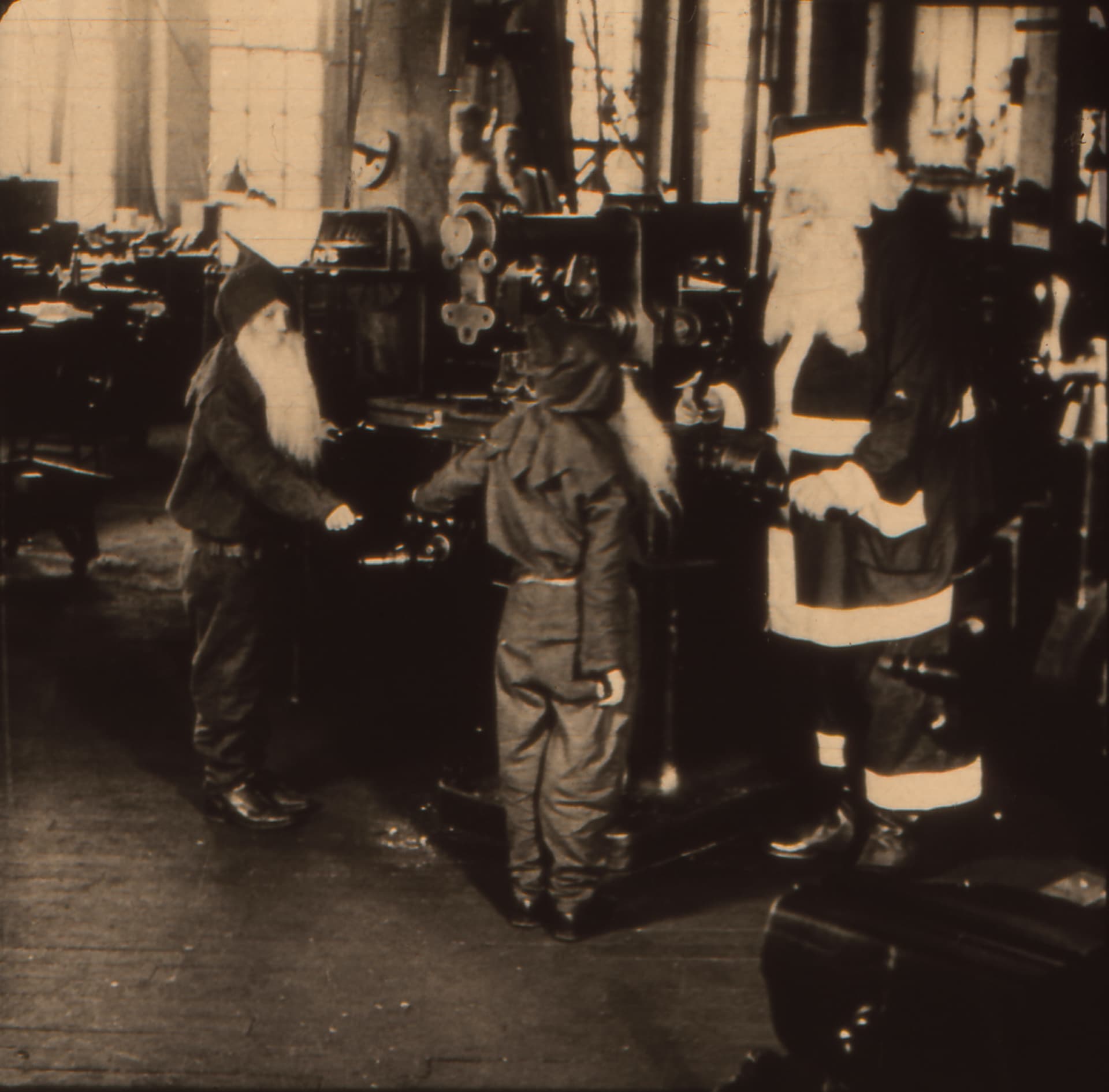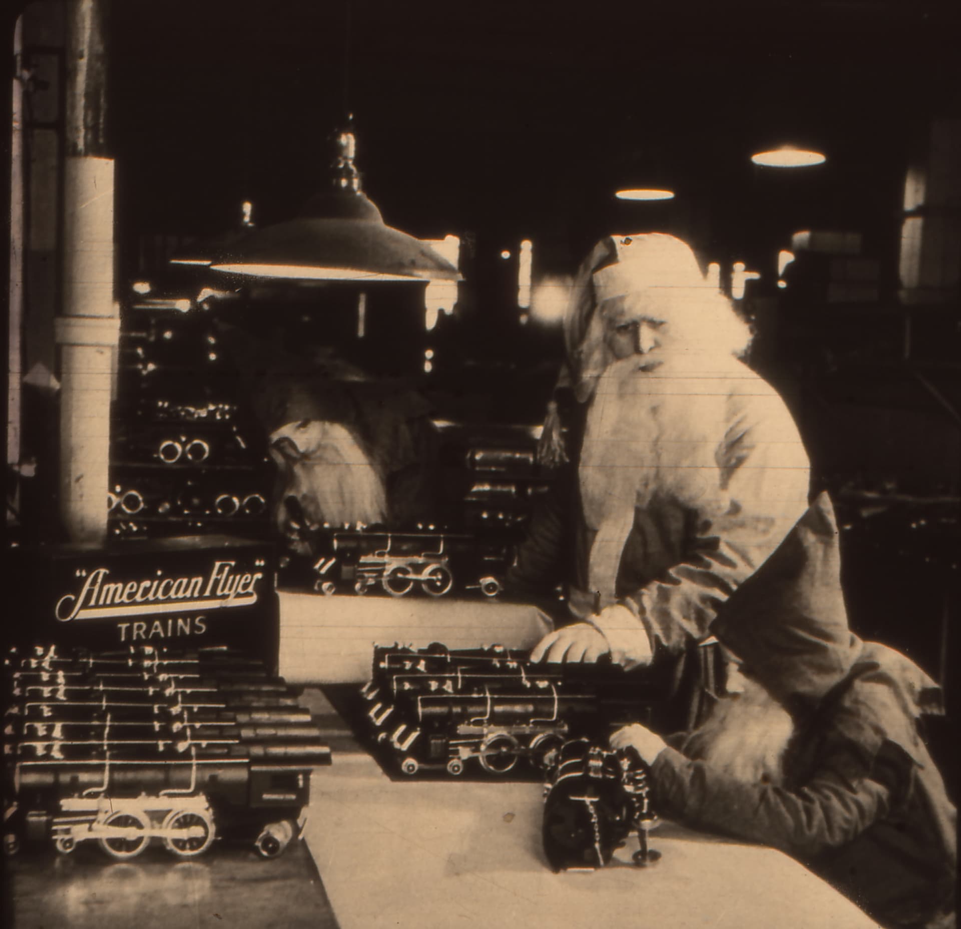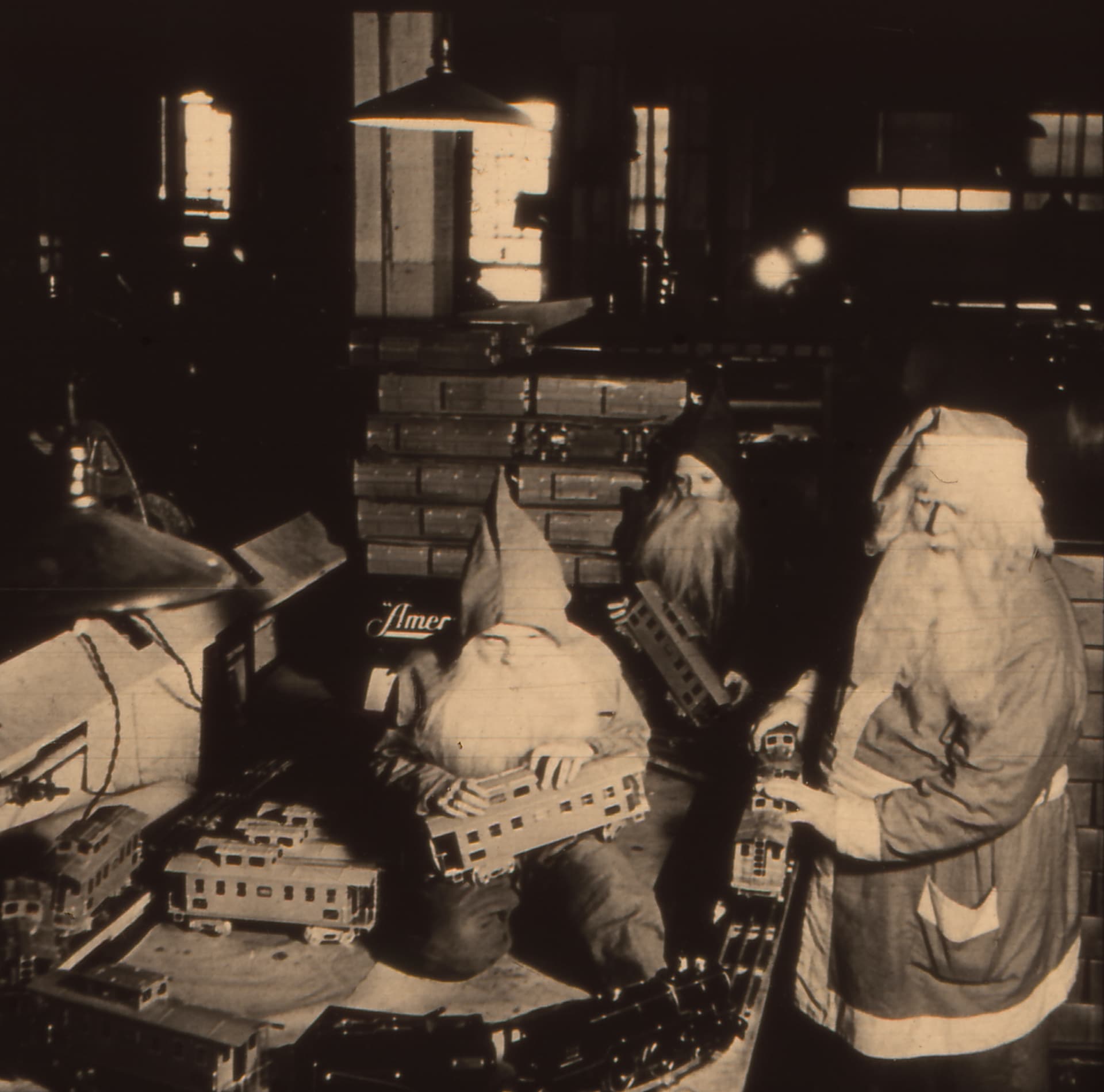 Although using the factory as Santa’s North Pole workshop was probably done for economic reasons, doing so provided an invaluable photographic record of the equipment that was used to make American Flyer trains in the years prior to World War II.