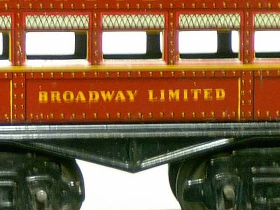 The catalog for 1926 shows The Broadway Limited with the cars with American Flyer Lines in the name board and the coach being labeled for Seattle and the Observation being labeled for Chicago. (I do not have examples of these cars.)