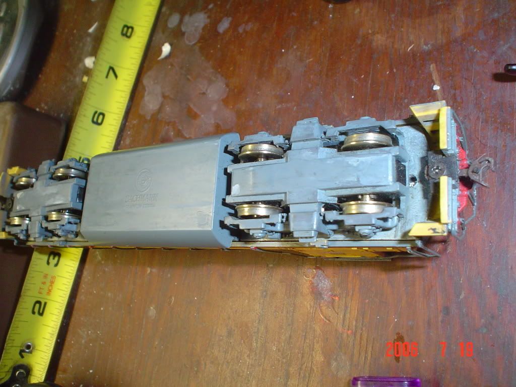 Here a a couple of pics of the underside of the Bachmann, You can see how the NS has been polished off. I wish I was rich instead of so good-lookin (HAHA) I would buy a fleet of Atlas locos.