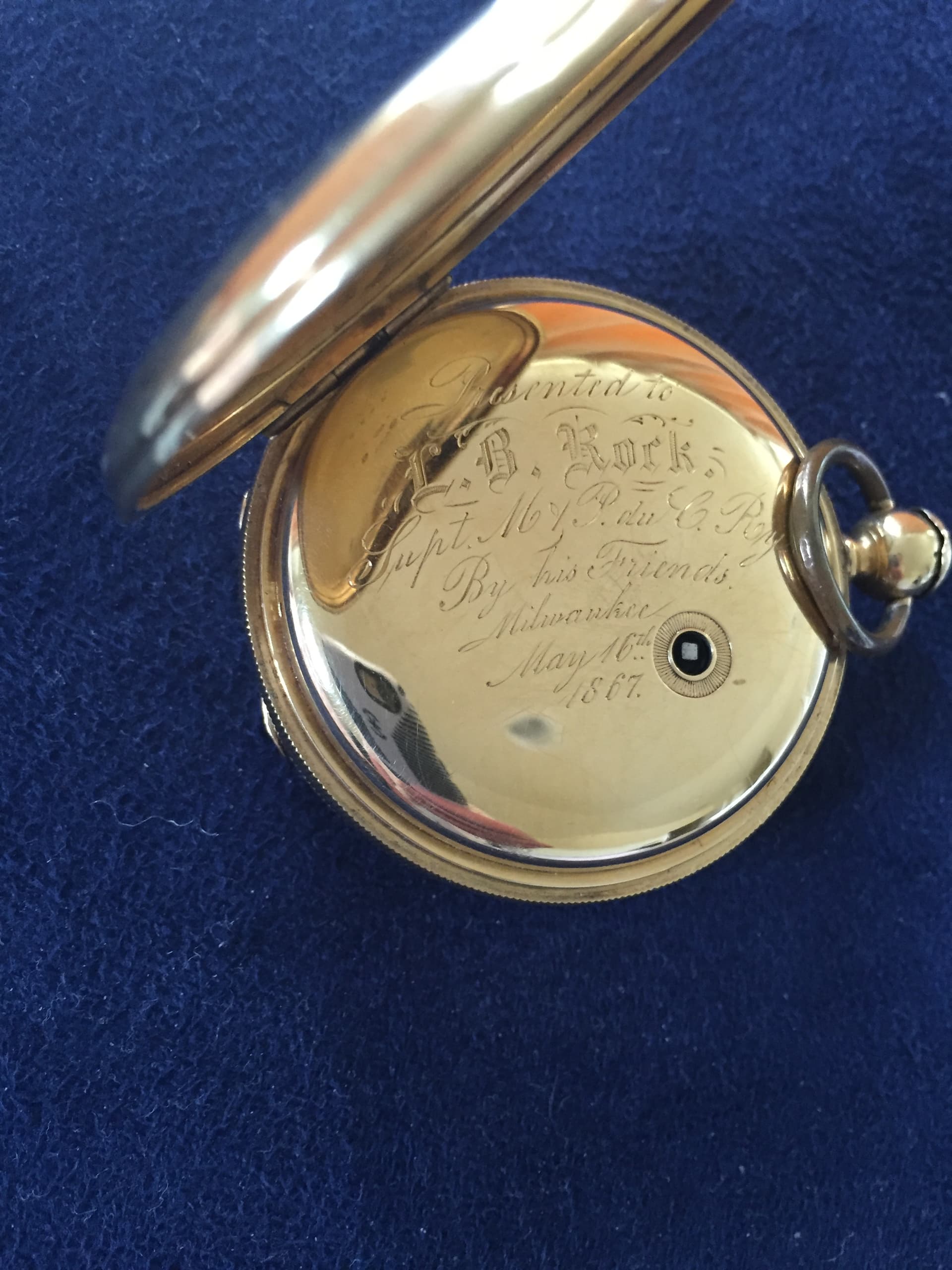 My great-great grandfather was a Superintendent on the Milwaukee and Prairie du Chien Railway. I have his gold retirement watch (1867).