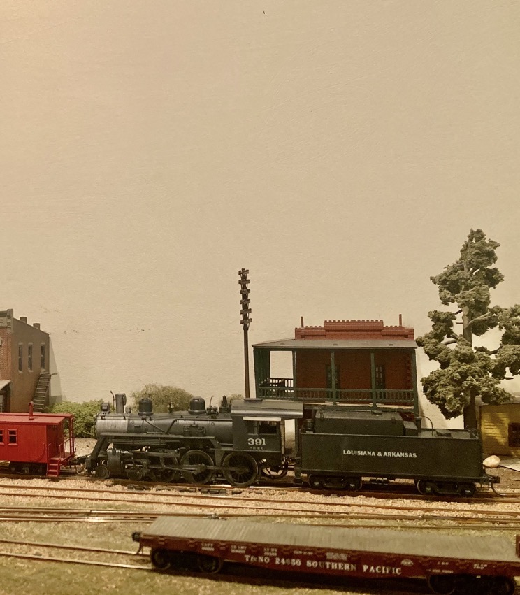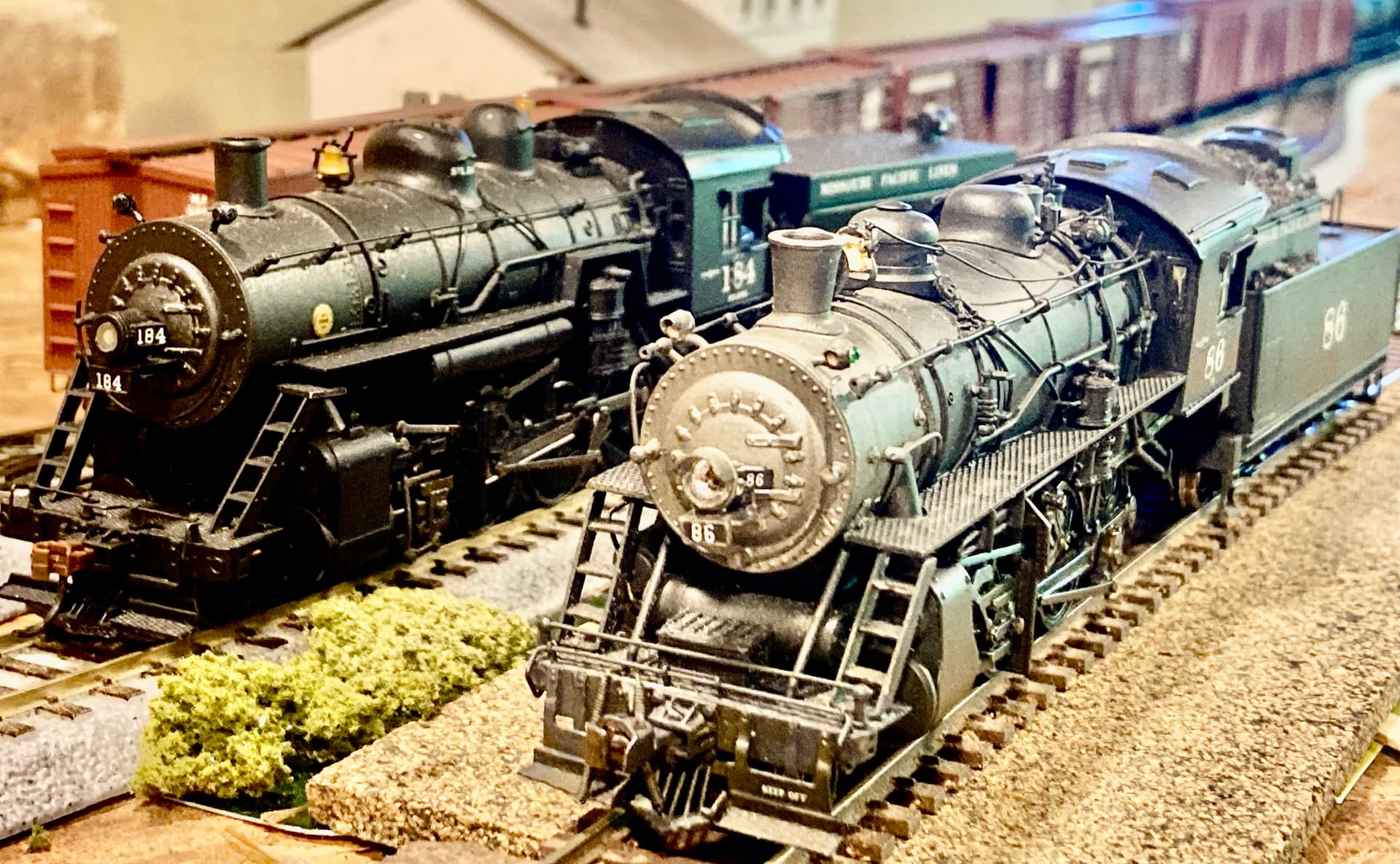 My two brass MP engines. That’s probably it for me. I have four Bachmann decapods that are close enough to the Missouri Pacific prototype. The brass one in the background in this photo, while a great engine in appearance and operation, doesn’t warrant the acquisition of any more of them.