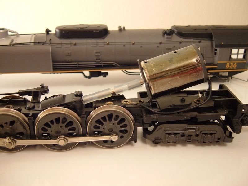 Sadly I cannot help. I remotored a 2-8-4 berk and it has a whole different set of problems. Mine had a off center driveline that made it troublesome to get the drive line and motor square. After a good bit of grinding the frame I did manage to get a Tan Can motor in and a short piece of rubber tubing. It runs quiet now and runs smooth but needs better pickups and it does stall out(maybe dirty wheels and track). It was a good project and it got weathered real nice now it is ready to sell. That was my only interest was to work on it and sell it. Practice for upcoming personal projects.