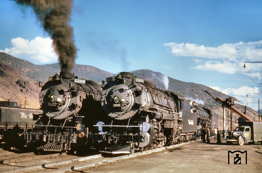 On page 28 there are two fine photos of class M-67 Mountains. The text suggests that both photos were taken at Salida which I think isn’t the case. The lower photo now surfaced in a German collection https://eisenbahnstiftung.de giving Soldier Summit as the location which is unlikely: