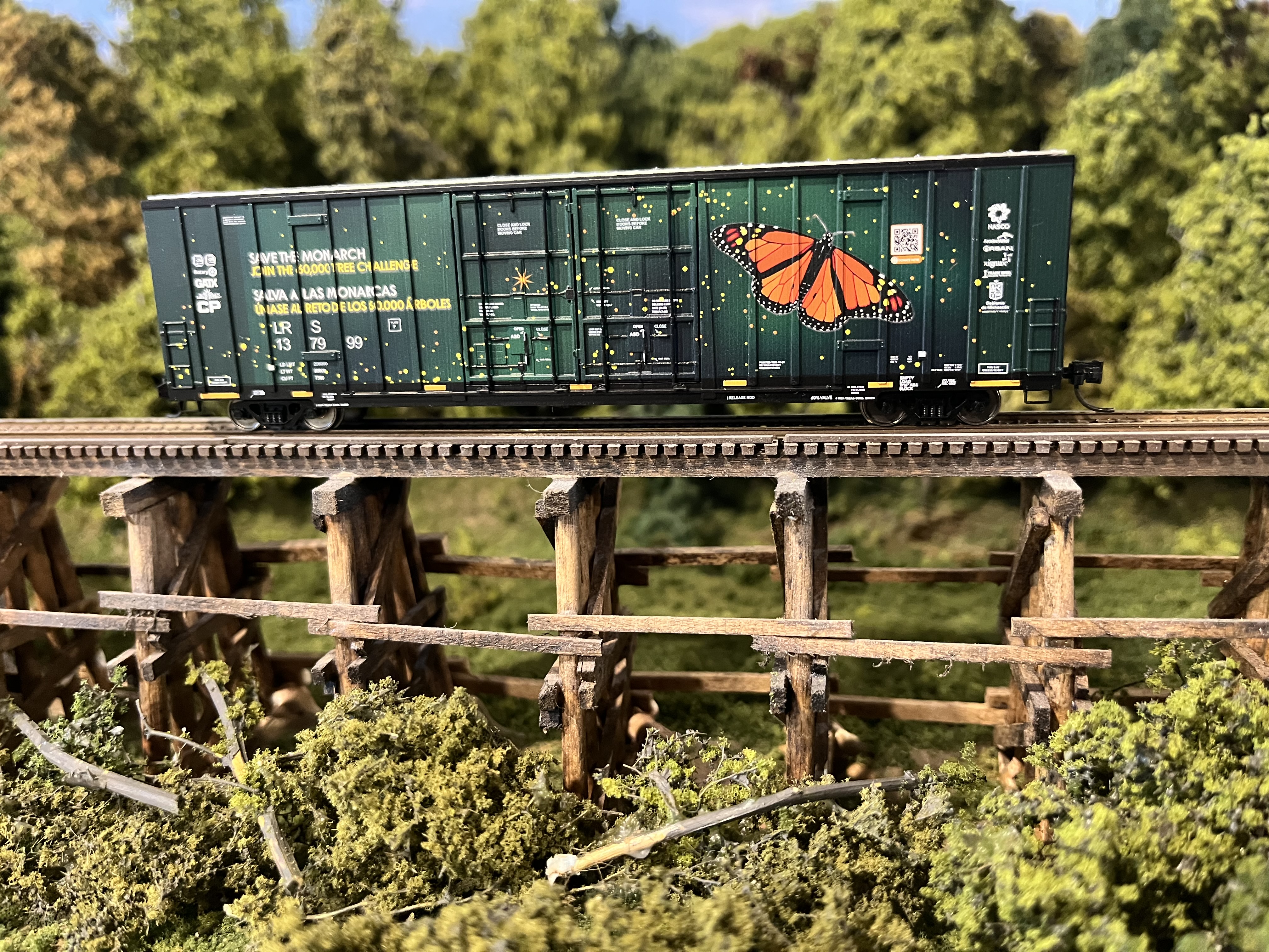 This is a great printing technique. It’s not just ordinary pad printing that can produce such detailed drawings on the side of an exterior-post car. It’s LRS 137999, Monarch Butterfly. Definitely worth $54.98 (Micto-Trains Line).