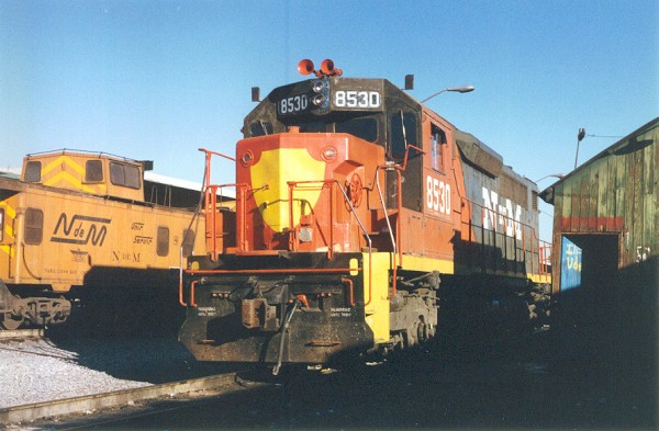 Here’s TFM 1319, ex N de M 8531, the unit that eventually became KCS 2600 (shown here as an SDP40 prior to rebuilding). I couldn’t find any photos of the 8531 in original paint, but I’m reasonably certain it wasn’t built with a ratchet handbrake like the GN units.