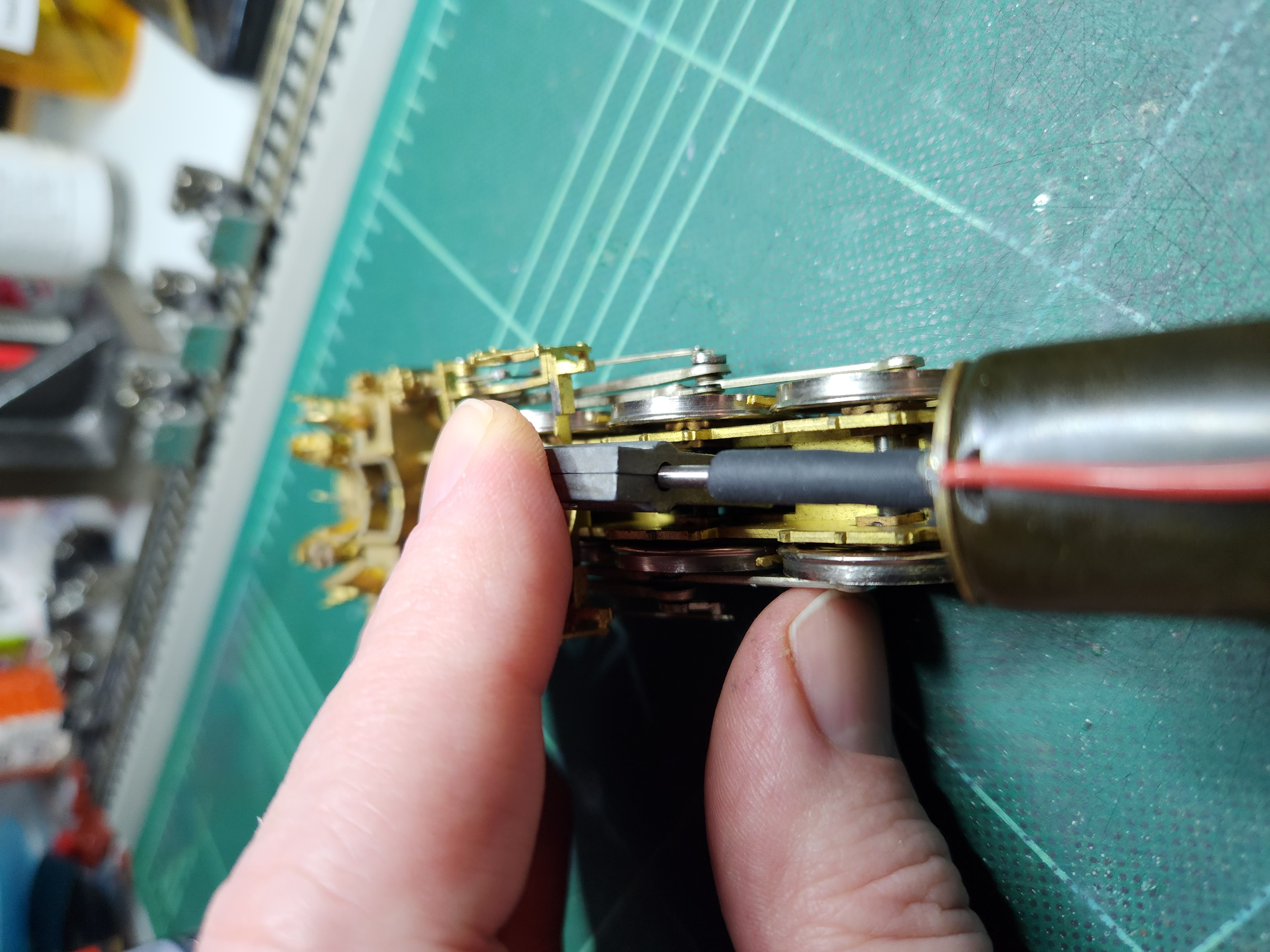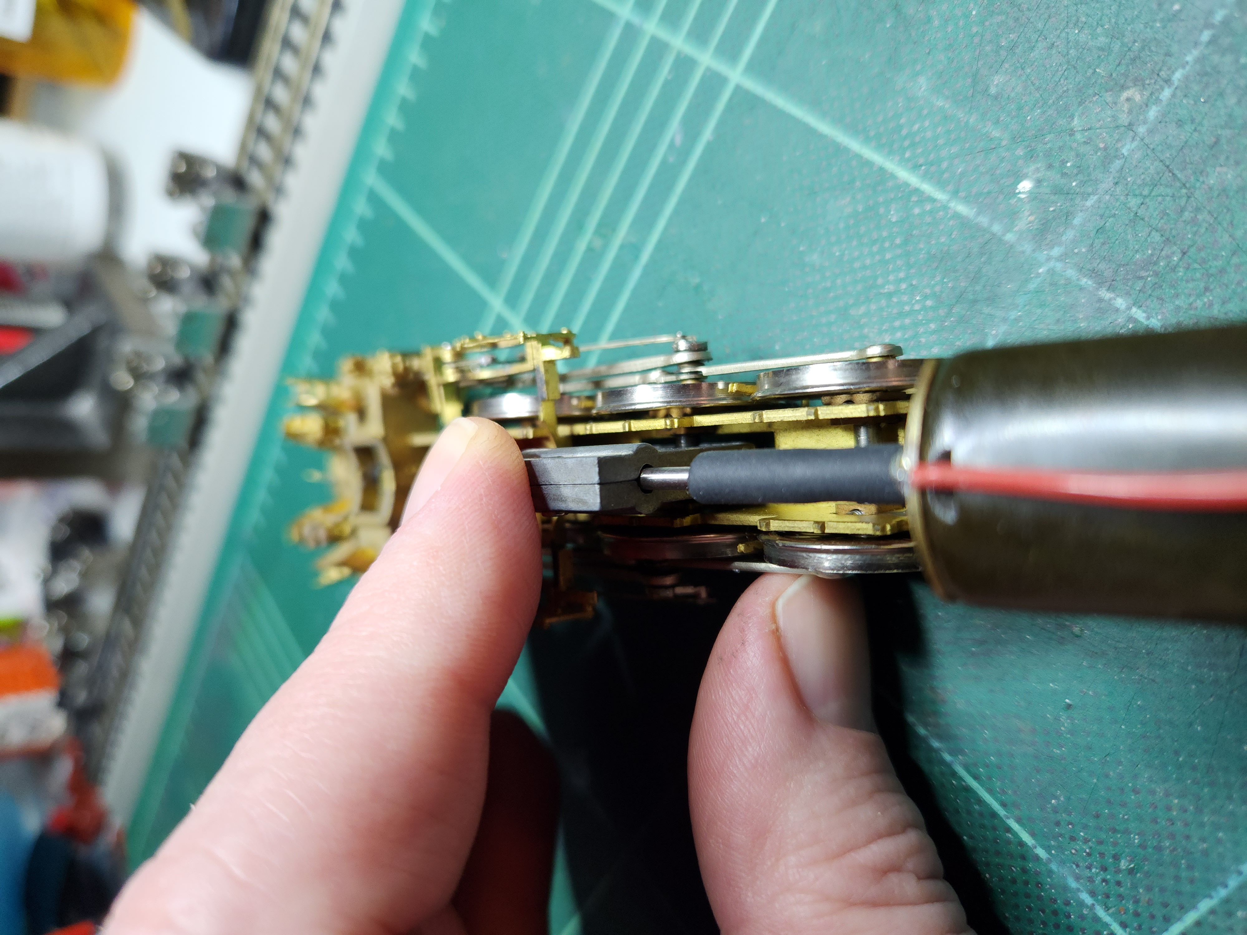 I noticed that the original black tubing was slipping on the motor shaft when the motor stalled so I replaced it with DuBro silicone fuel line, which I’ve successfully used on a few other locomotive rehabs:
