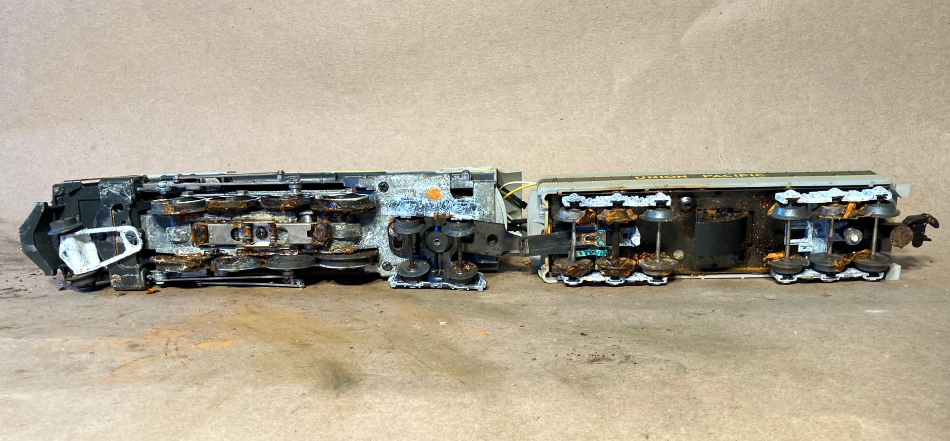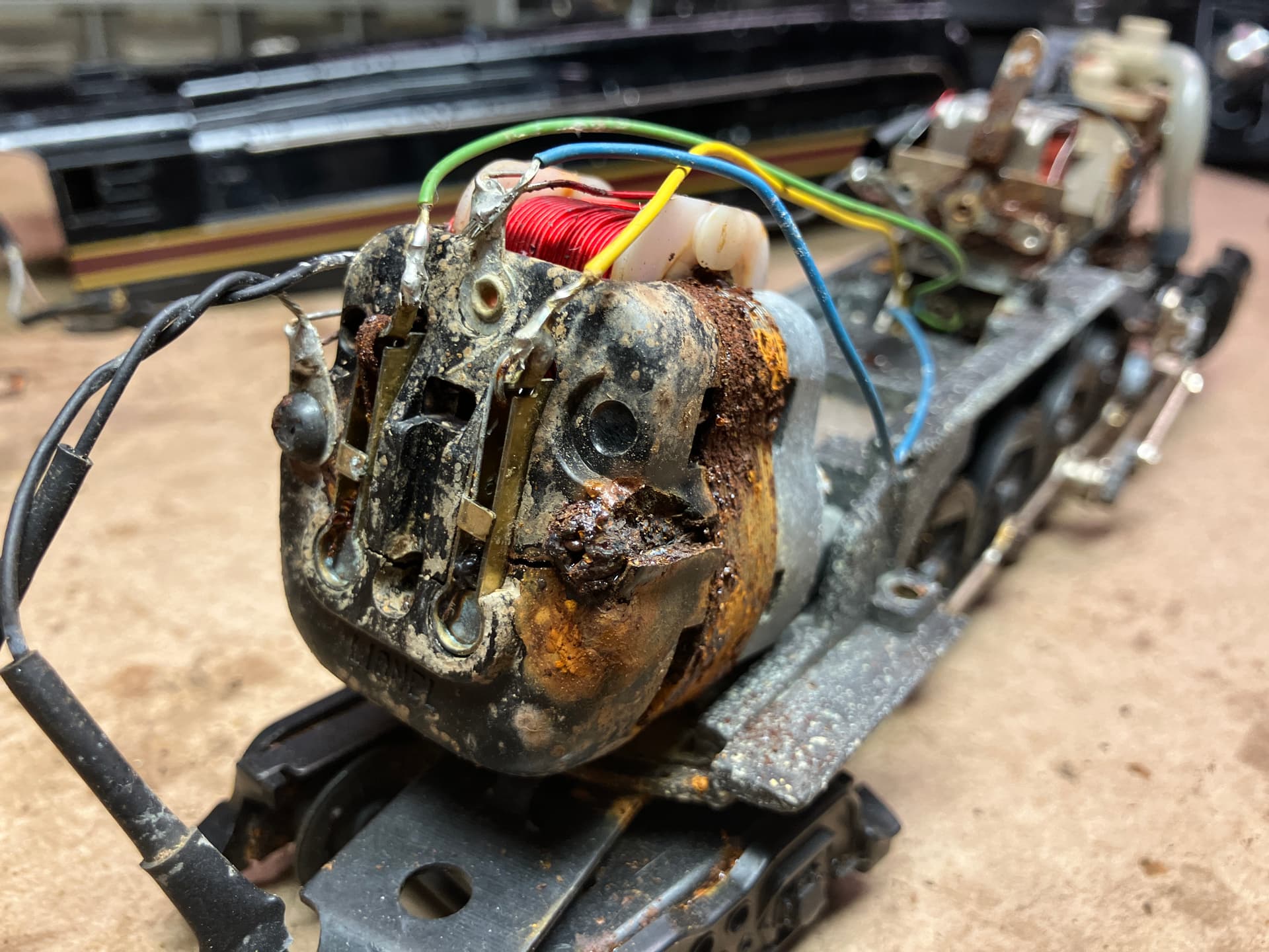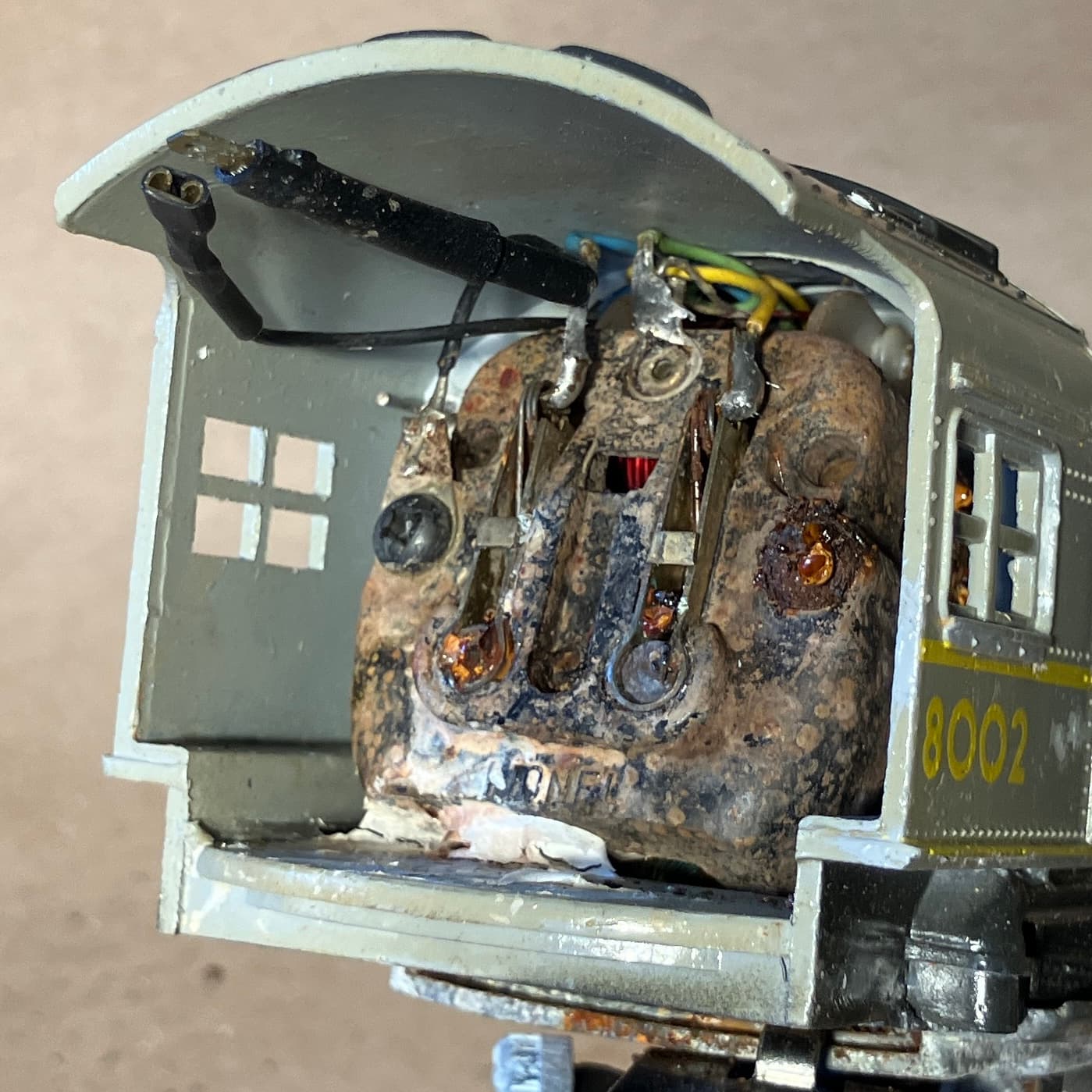 Things are mostly salvagable, but unfortunately the one thing I didn’t account for were the armatures on the N&W J 8100 and the UP 8002. The worm wasn’t really protected from moisture and got chewed up by rust. And I can’t seem to find anybody who’s got a replacement 8002-125 armature. Yeah, I’ve tried all the usual suspects, believe me.