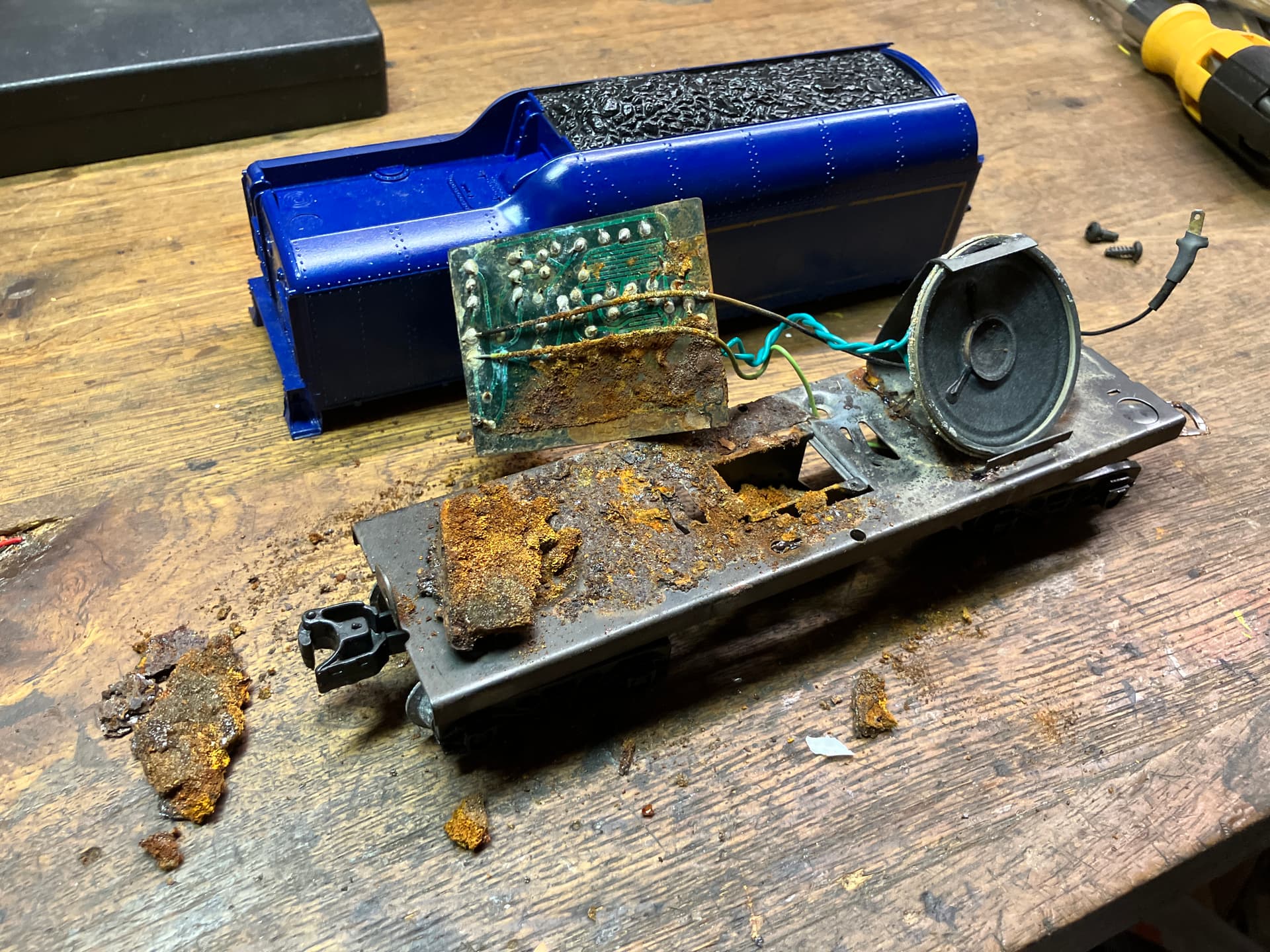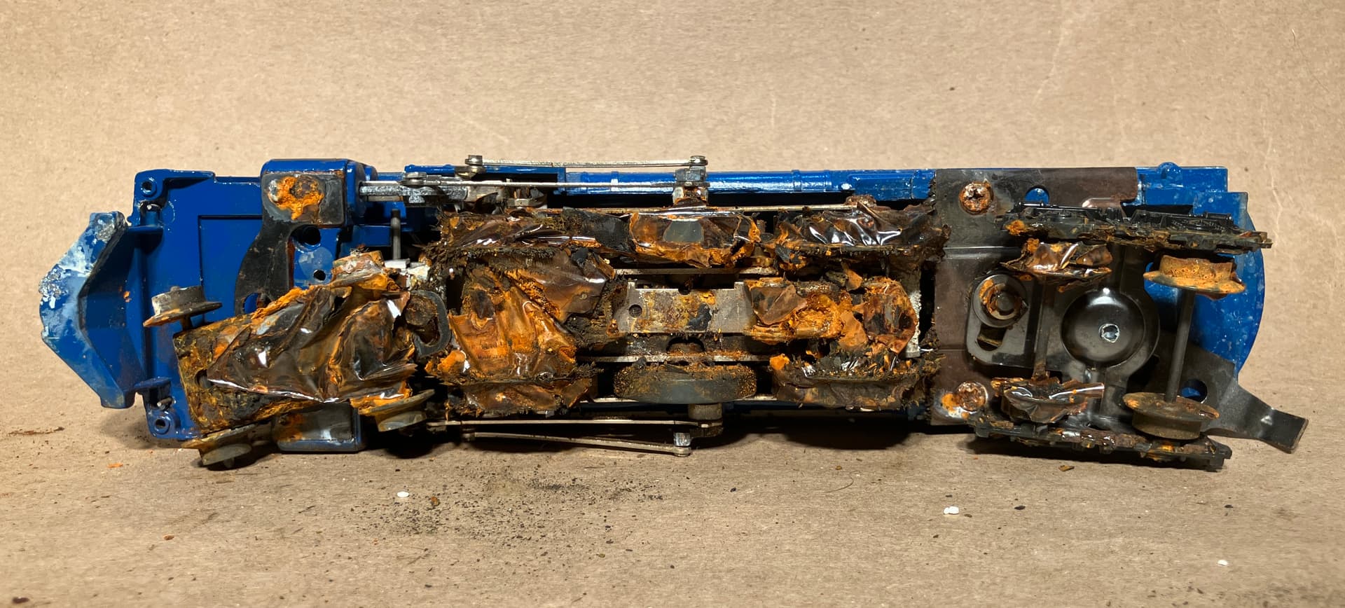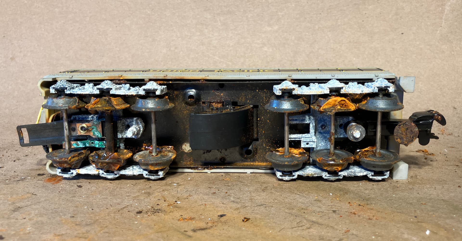 Things are mostly salvagable, but unfortunately the one thing I didn’t account for were the armatures on the N&W J 8100 and the UP 8002. The worm wasn’t really protected from moisture and got chewed up by rust. And I can’t seem to find anybody who’s got a replacement 8002-125 armature. Yeah, I’ve tried all the usual suspects, believe me.