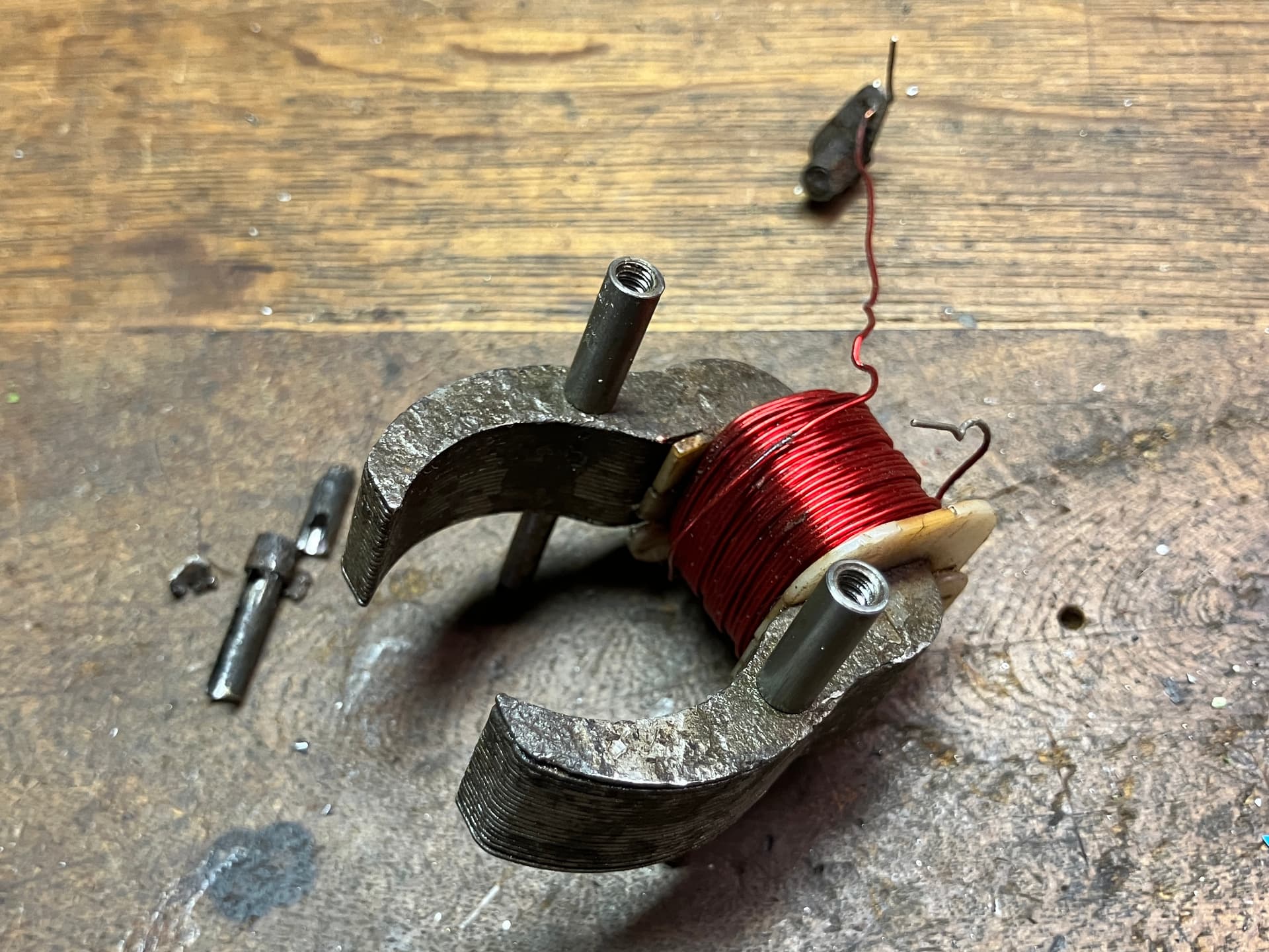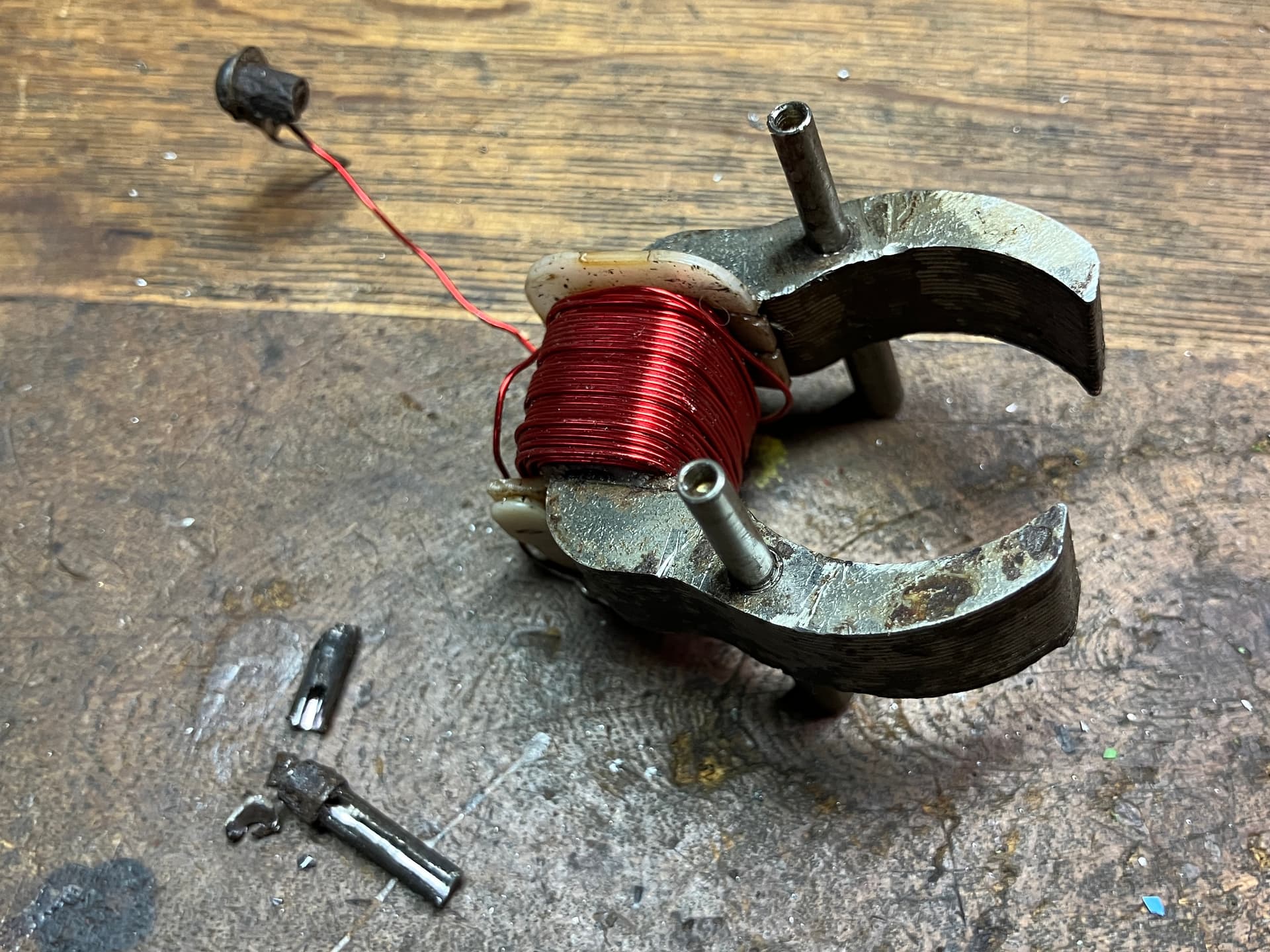 I couldn’t find one at the time I was originally looking, but it has since occurred to me that if the coil and laminations are the same as those used in other motors, like the 364, 397, and 622, then that could be a good avenue to go down. I could acquire one of those fields, replace the studs, and use it in place of my gnarly looking one.