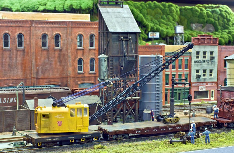 The Big Hook is on the way within a few minutes for a ten mile trip to scene of the derailment. It is kept on a live steam line 24-7, so when it is needed, it will already have steam up for running its giant hoisting machinery.