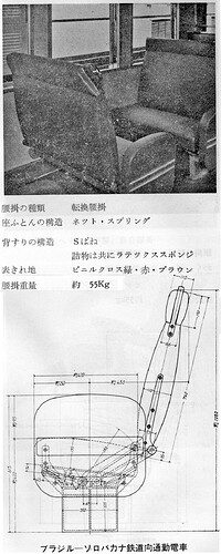Two-link type Walkover Seat for export to Brazil, Sorocabana Railway Estrada de Ferro Sorocabana 1957 (Railway Rolling Stock Technology No. 70, Rail Car Industrial Design “Seats” published in 1961)