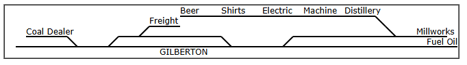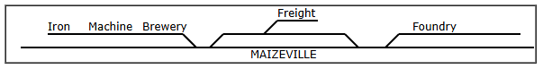An other town on my layout has a switchback spur with 5 industries. Sidings on the mainline also allow trains to pass one another when going in opposite directions.