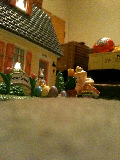 The freight train in question, Lionel’s Boy’s train set hauls a cargo most kids could only dream of for Easter. Lots and lots of candy…