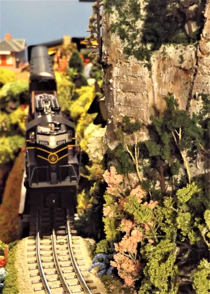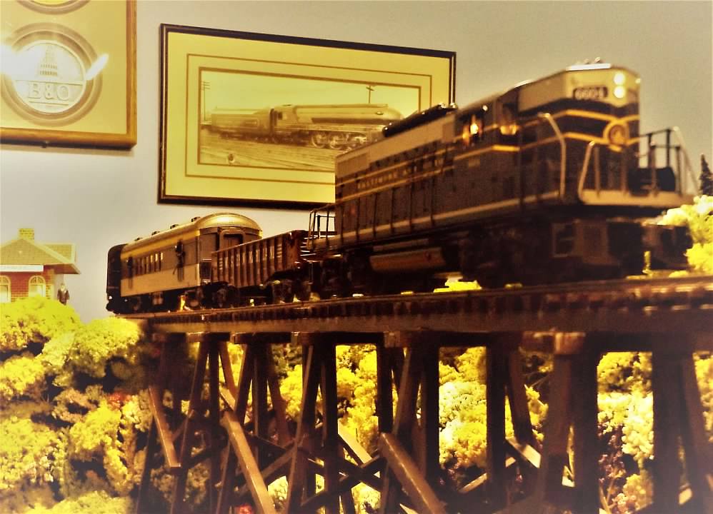 The engine shell is from a MTH Proto 1 engine, and now rides on a Proto 2 chassis and mechanism from a GP20. This “bash” was the result of the electronics going on the fritz in the GP-9, and the GP20 (former NYC, sorry Bob) not fitting the train room motif…