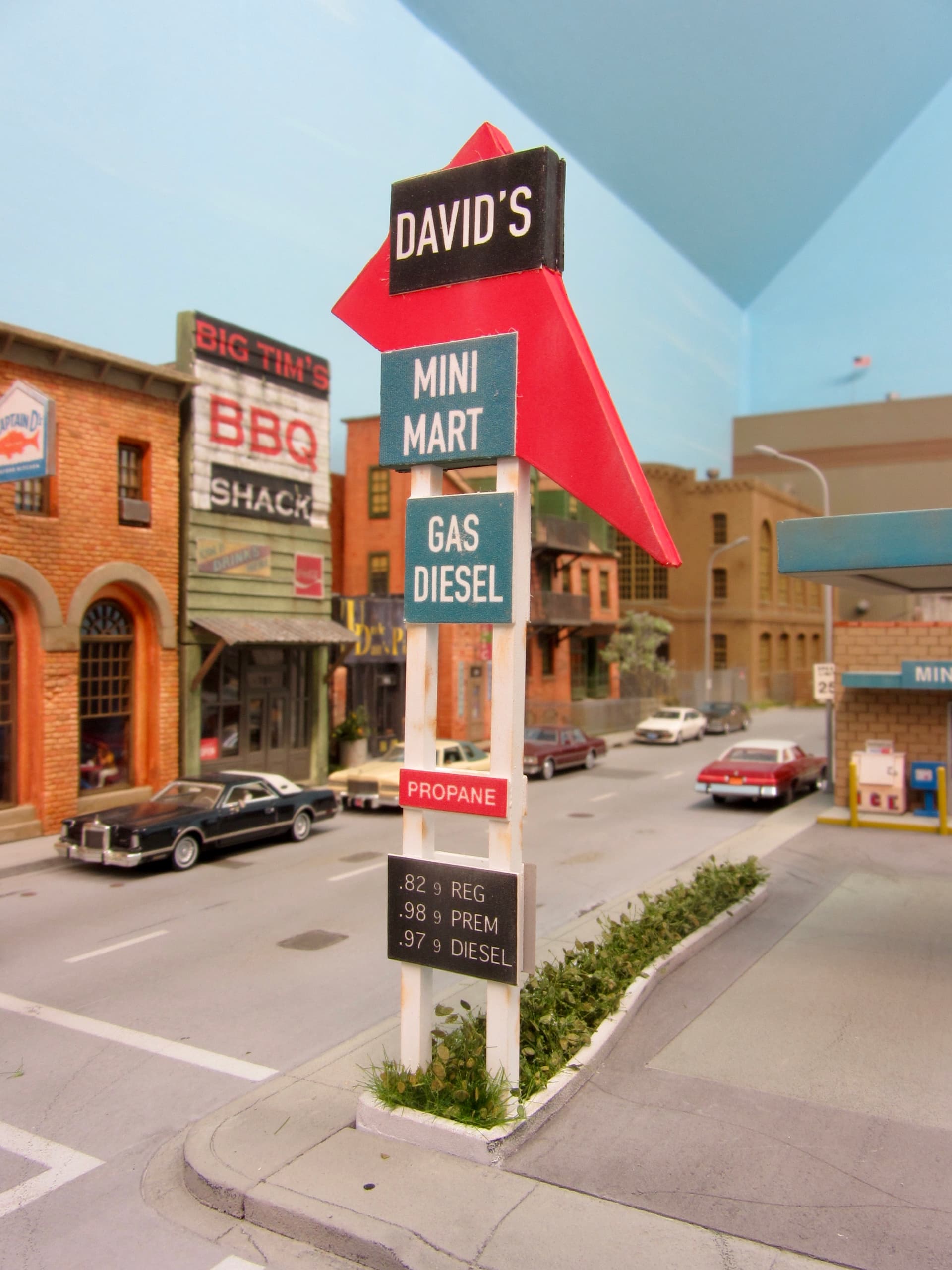 My grandson David’s suggestion of a layout gas station and researching Route 66 icons led to this fav scratch-build.