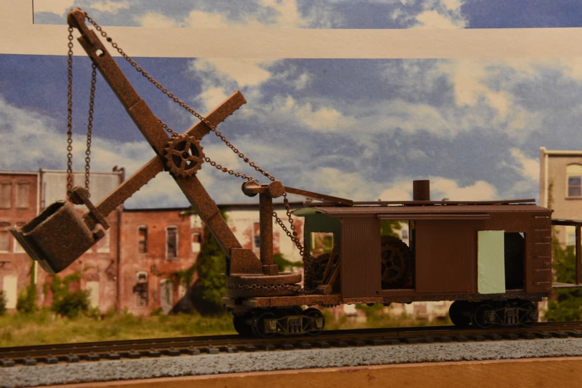 Car mounted steam shovel.