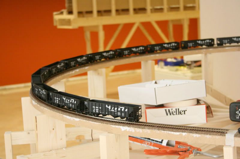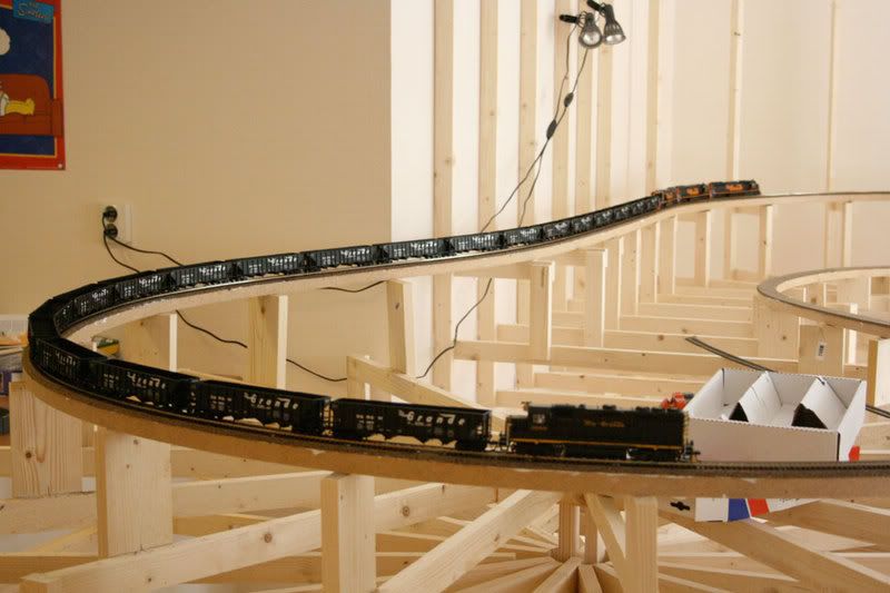 Call me nervous Nicholas, but I hope you don’t make operating trains, expecially with rear or mid-train helpers, a frequent practice until you install some basic scenery. I’d hate for you to end up with a gravitational disaster. I wince every time I see those photos.