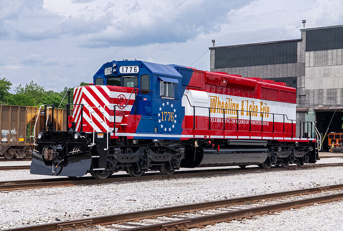 Wheeling & Lake Erie’s unit wearing a paint scheme inspired by N&W’s bicentennial SD45: