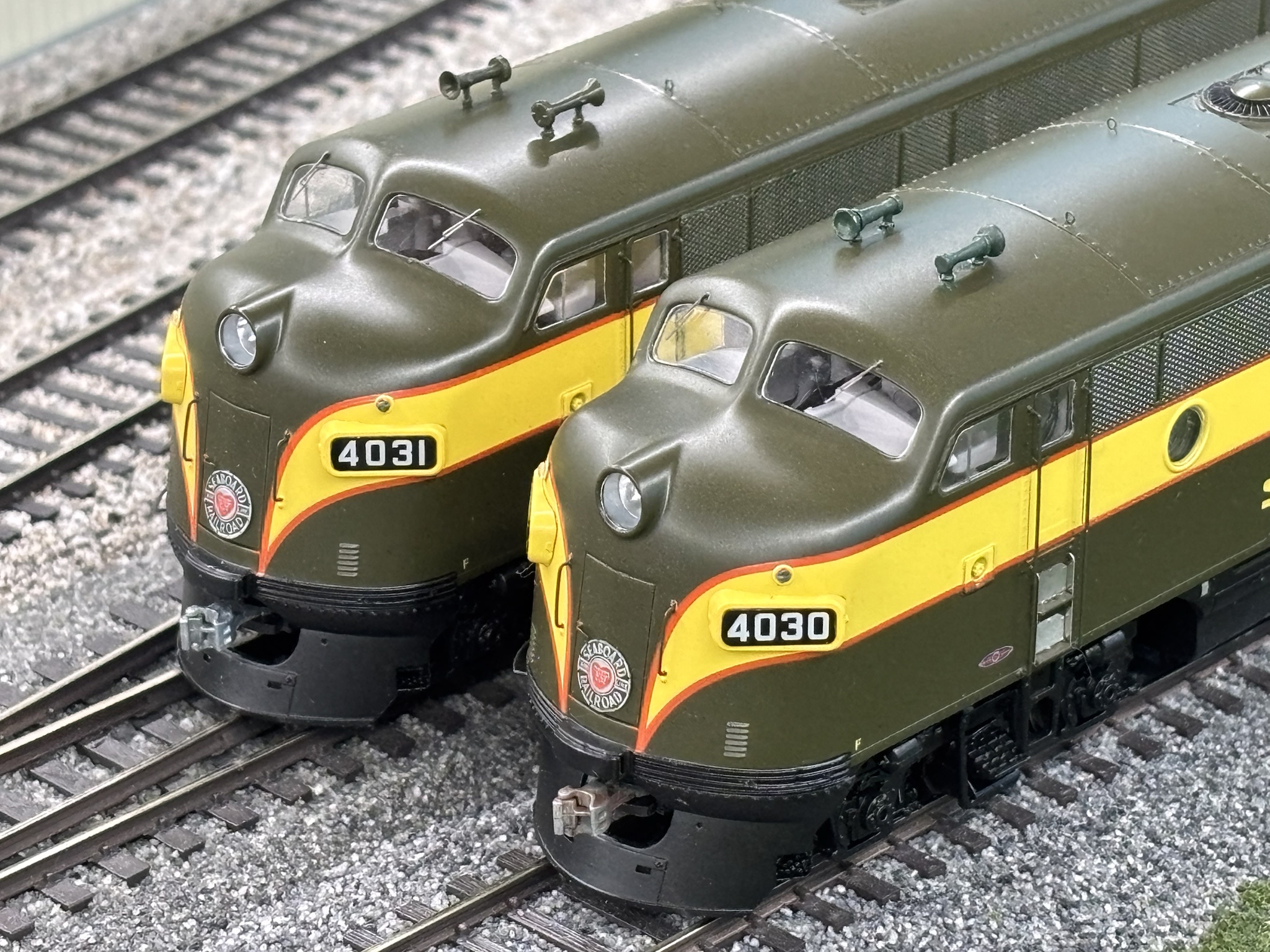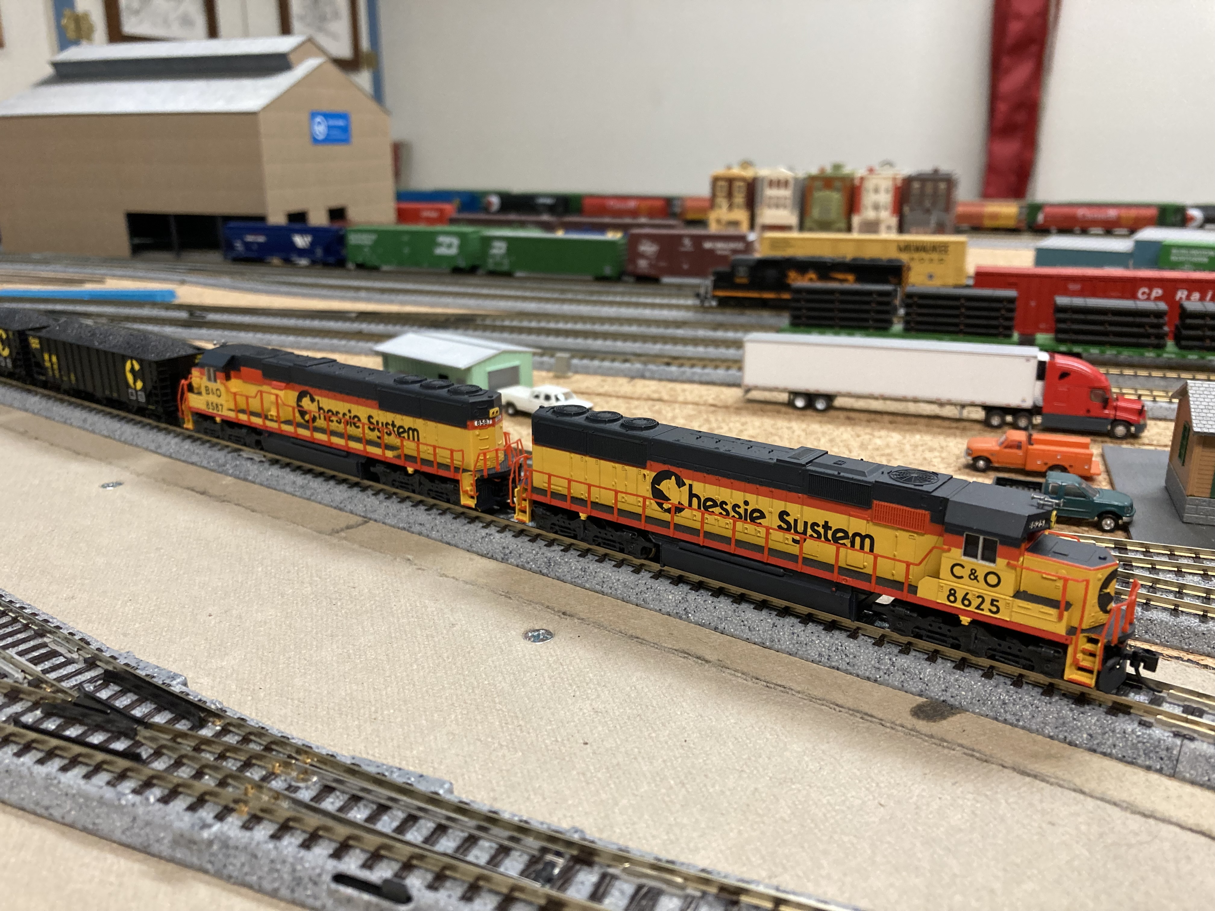 Two AC4400CWs on my intermodal train. Both are Athearn, but made 20 years apart. I need to add details to the older (#42) to give them a more consistent appearance. They run ok together, but given different eras and different brand decoders - I have some work to do, to improve speed matching.