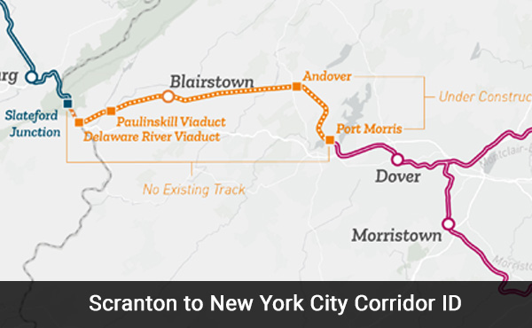 The former is supposed to proceed via a restoration of the CNJ Raritan line (now with some service to High Bridge). Yes, via Phillipsburg. This would require at least one comparatively expensive tunnel under the I-78 grade, and a great winding diversion to the north. On the other hand the line is demonstrably compatible with Manhattan Direct service even though only one of the current Raritan commuter trains uses the dual-mode power – I presume the revived faux Gateway will be pushed through by the time arrangements on the west end have been made.