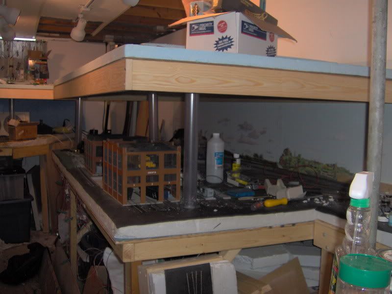 Well this weekend was a somewhat productive weekend. My father and I finally got to working on some of the top layer of the layout. The middle section of the main layout is up and the yard section. Smaller sections are to be built sometime soon or so I’m hoping. Comments welcomed other than I should have used other things other than clear plastic pvc. the tables are a mess had find areas to put things.