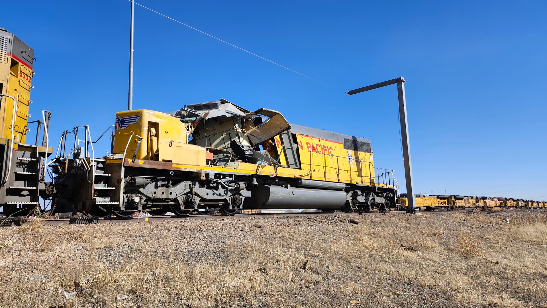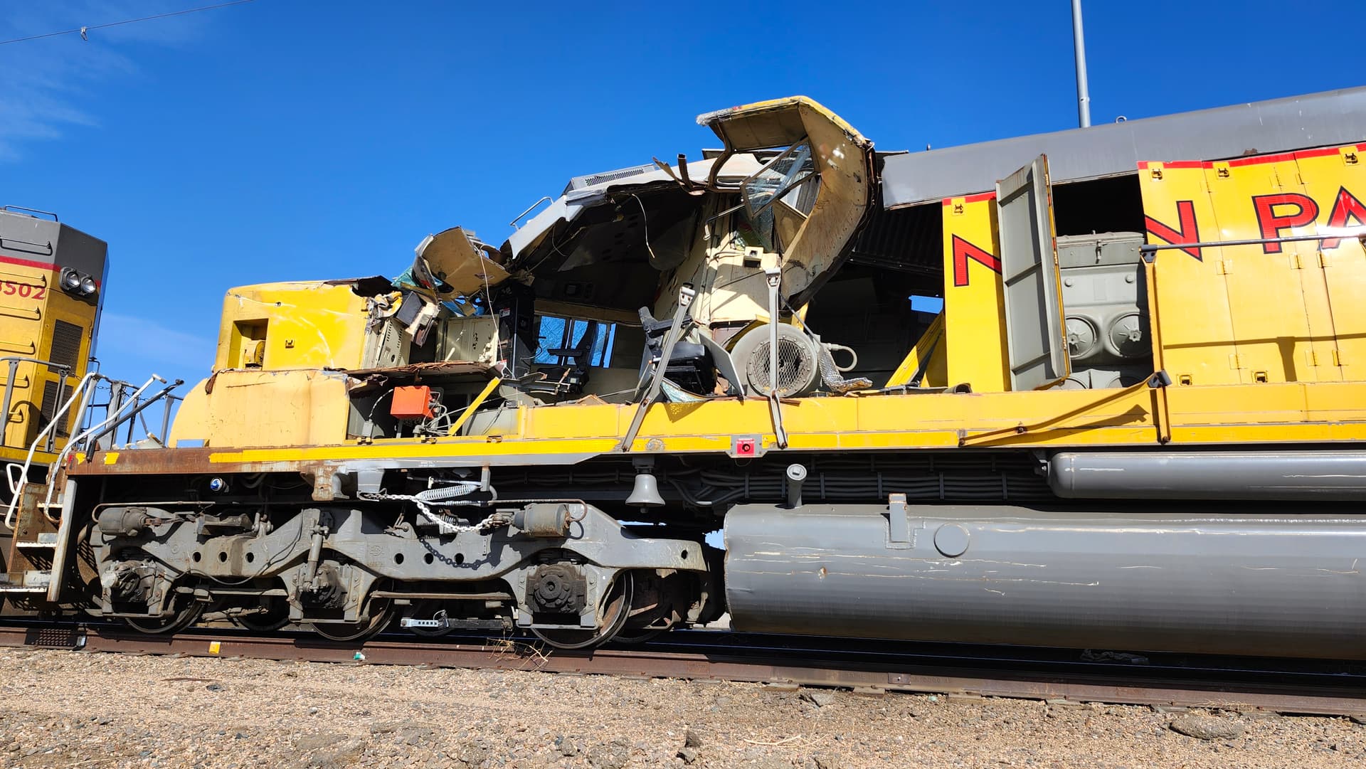 Randomly curious about something: I went to North Platte, NE this past weekend, and at the locomotive shops, there were multiple lines of locomotives. At the end of one of those lines, there was UPY 422. The nose appeared fine, but the cab (the control stand area) was crushed in, crushed all the way through to the first few panels of the long hood. Does anyone know what happened here? Did it run into something that was higher than the nose, but not high enough to clear the whole locomotive? (I will upload one or two of the pictures I took of 422 when I get the chance) I am just curious, because there is nothing I could find on it, and seeing a wrecked locomotive like that in person made me rather curious. Thanks if anyone has any info!