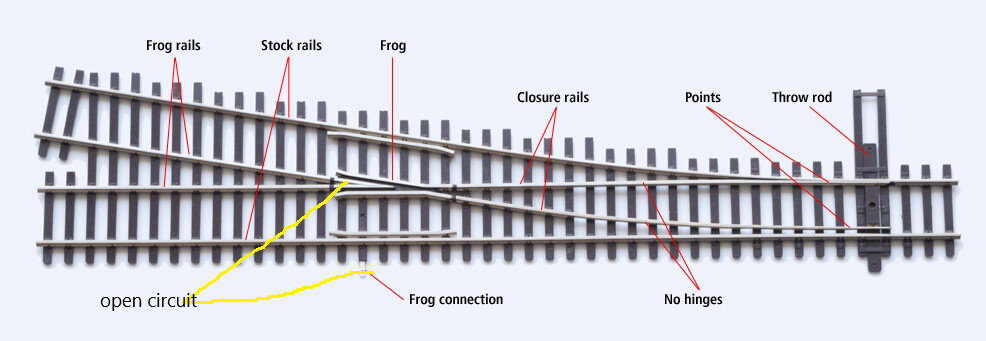 It’s the frog wiring tab that you can see poking out at the end of a tie and its failure to connect to the frog that is the fault.