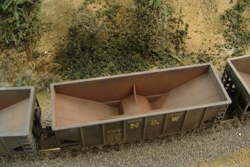 Having spent many years railfanning in the West irginia coal fields (in a former life) I became fascinated with the rusting through of the joints between the slope sheets and sides. This is an obvious place for moisture to react with the acids in the coal, and open gaps were common in older cars.