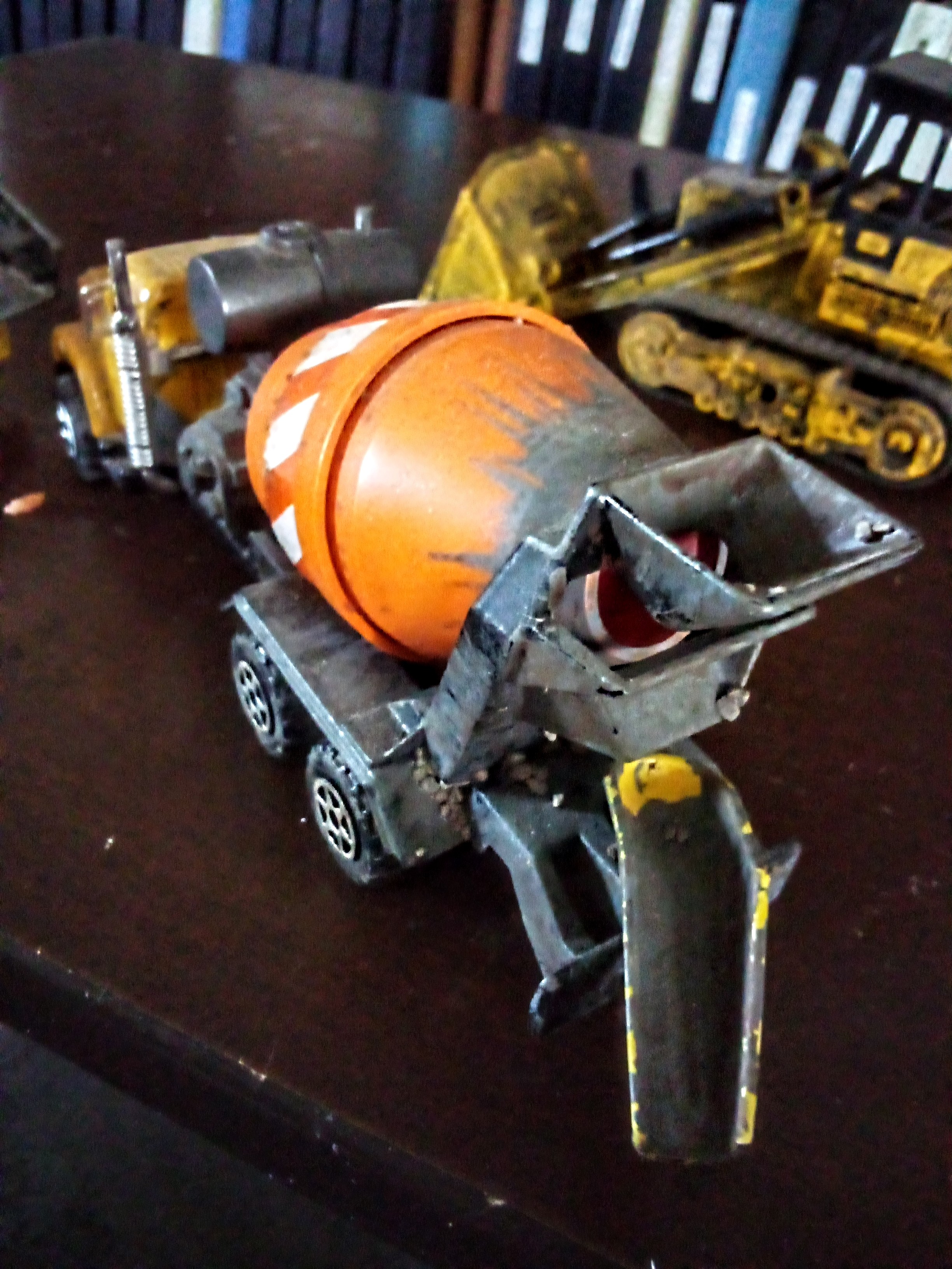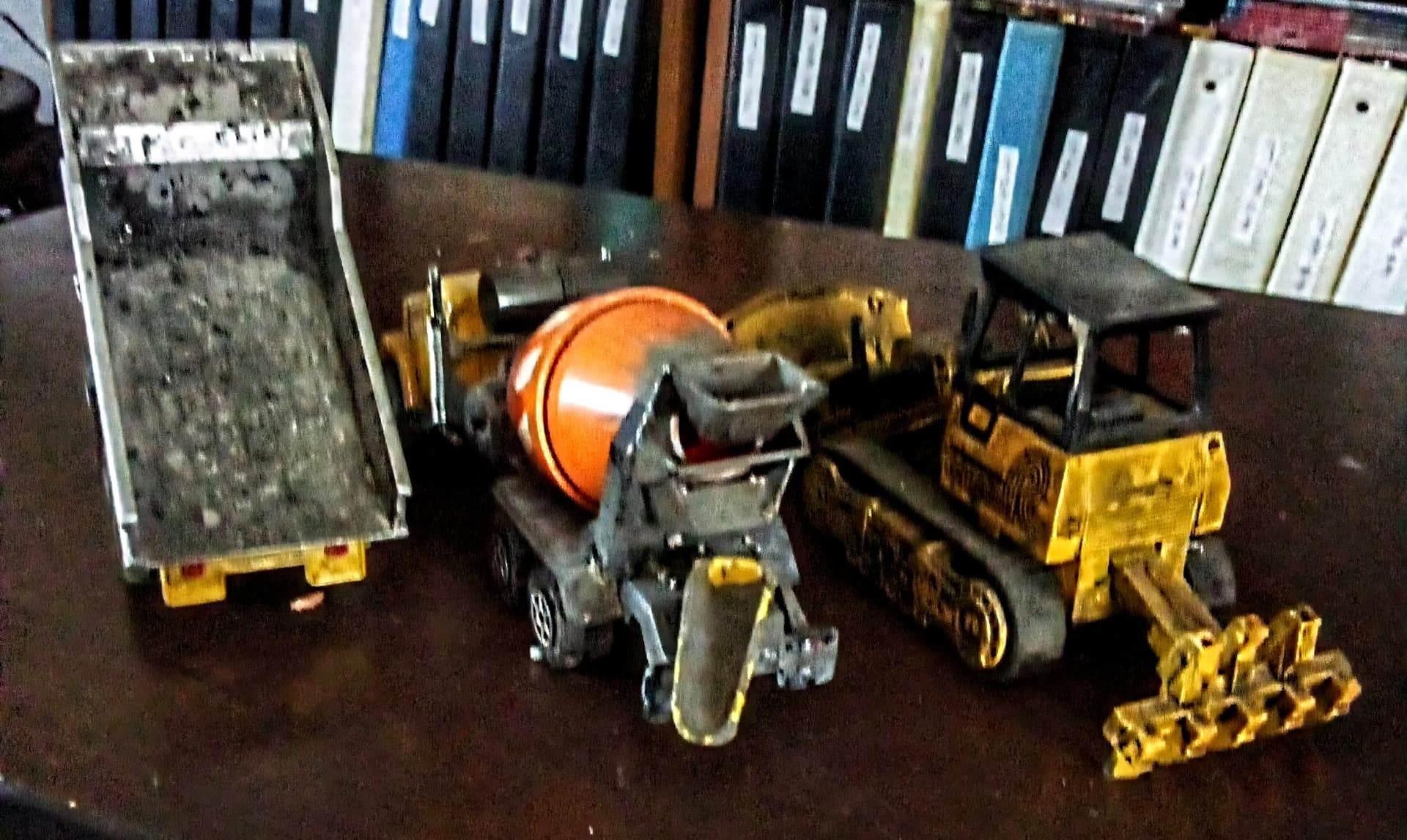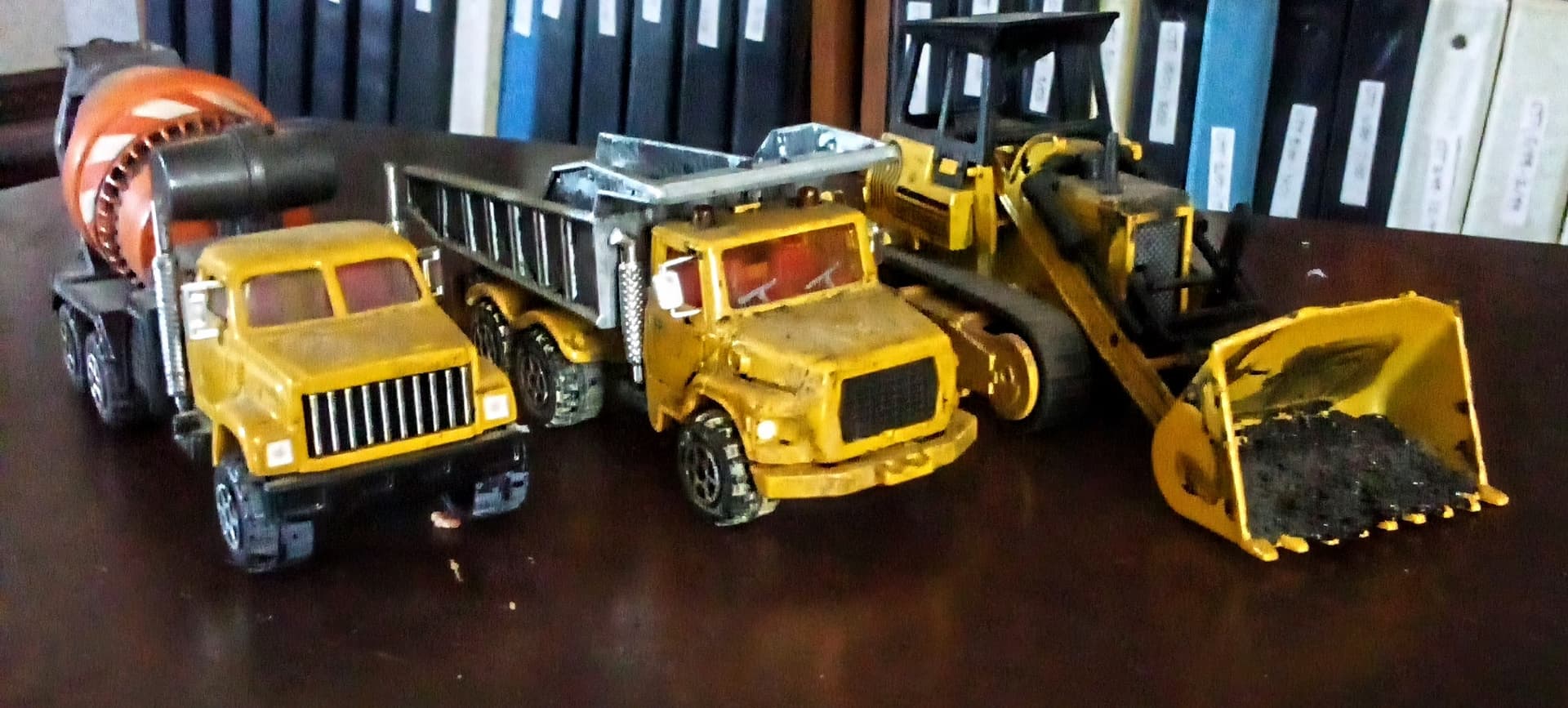 We were talking awhile back about weathering but I don’t remember what thread it was. Anyways, I promised to show photos of 3 construction vehicles I worked on approximately 30 years ago. If I recall correctly, I used charcoal ash, real dirt and water as my primary ingredients but there may also have been some pastel chalk in the mix.