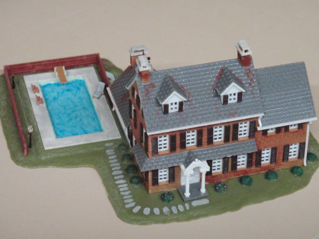 Lots of great photos this weekend. I’m still putting up insulation and drywall in the train room; the existing layout has new legs, but I haven’t put it into position yet nor are the structures, etc., on it yet. So, I’ve been working on some painting. This week I wanted to see if I could improve the “water” on the built-up home w/swimming pool I got as a gift. It was originally a very light green (too much of a reminder of what my own pool looks like if I don’t keep up with the water filtration), and the fence was the same green color.