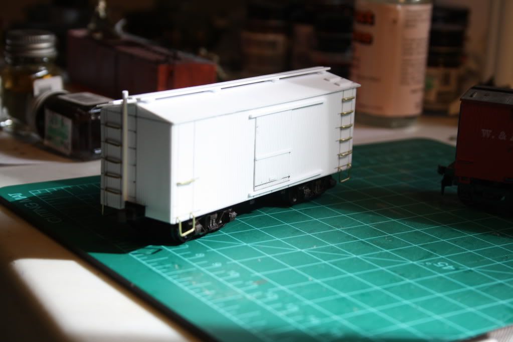 I finished scratch building a 30’ boxcar this week. I still need to figure out what I’m going to do for lettering, but I’ll start painting it soon. It has Tichy arch-bar trucks on it and Kadee metal wheelsets. No real prototype, just having some fun building.