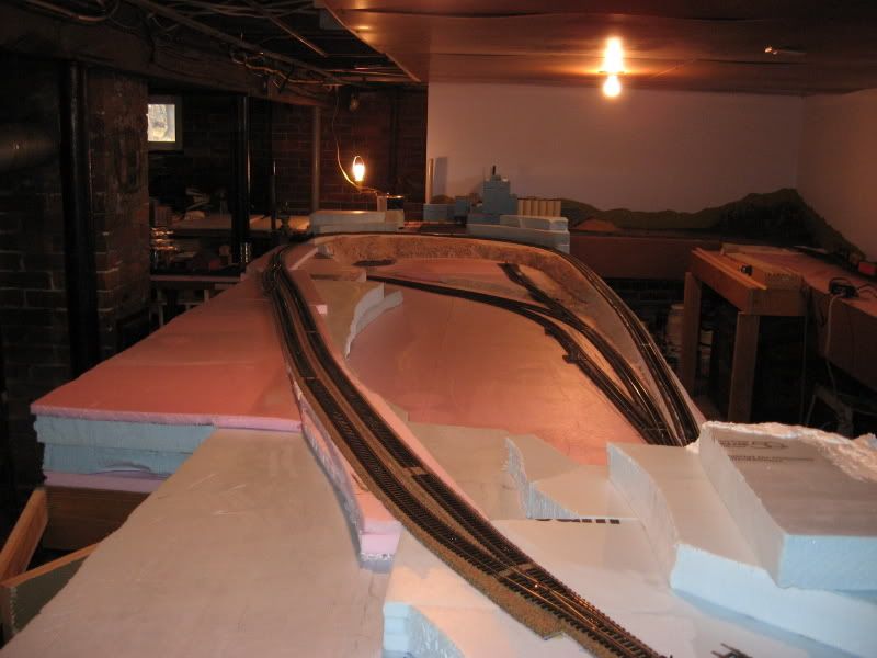 Okay, now I want to play catch-up, since I can get these photos to finally load. I’ve been doing some work on the layout, and installed some more scenery. The first shot is of the bridges over Malakoff Hydraulic Diggings, the other shot is some work I’ve been doing on the Deer Creek Yards (with the Deer Creek viaduct overhead).
