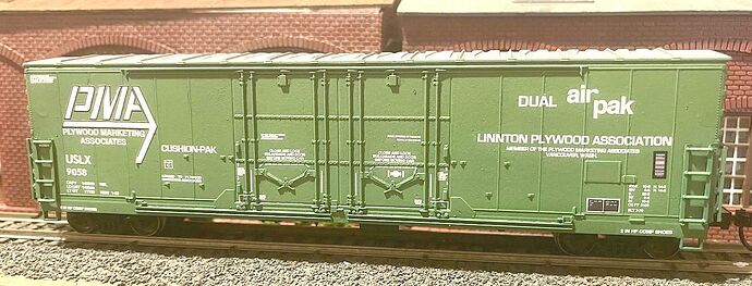 Next per a couple of posts in the MFCL this car was pointed out and I found there was a decal for it so I took one of my old Details West Blue Island Reefer kits (although 2’short) and replaced their coupler pocket with a Moloco one for maintenance purposes then painted the car with Floquiil Platinum Mist and Light Green paints and decals from CMR Products. This car was used to haul lumber products from the Pacific Northwest all over the country.