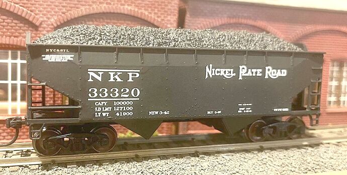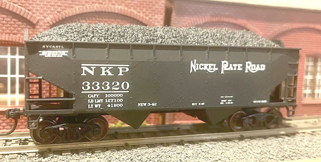 First is an Athearn Offset Side Twin Bay 50 Ton Hopper Car, painted with Scalecoat II Black paint and lettered with K4 Decals. The NKP used these for shipment of coal to small retailers.