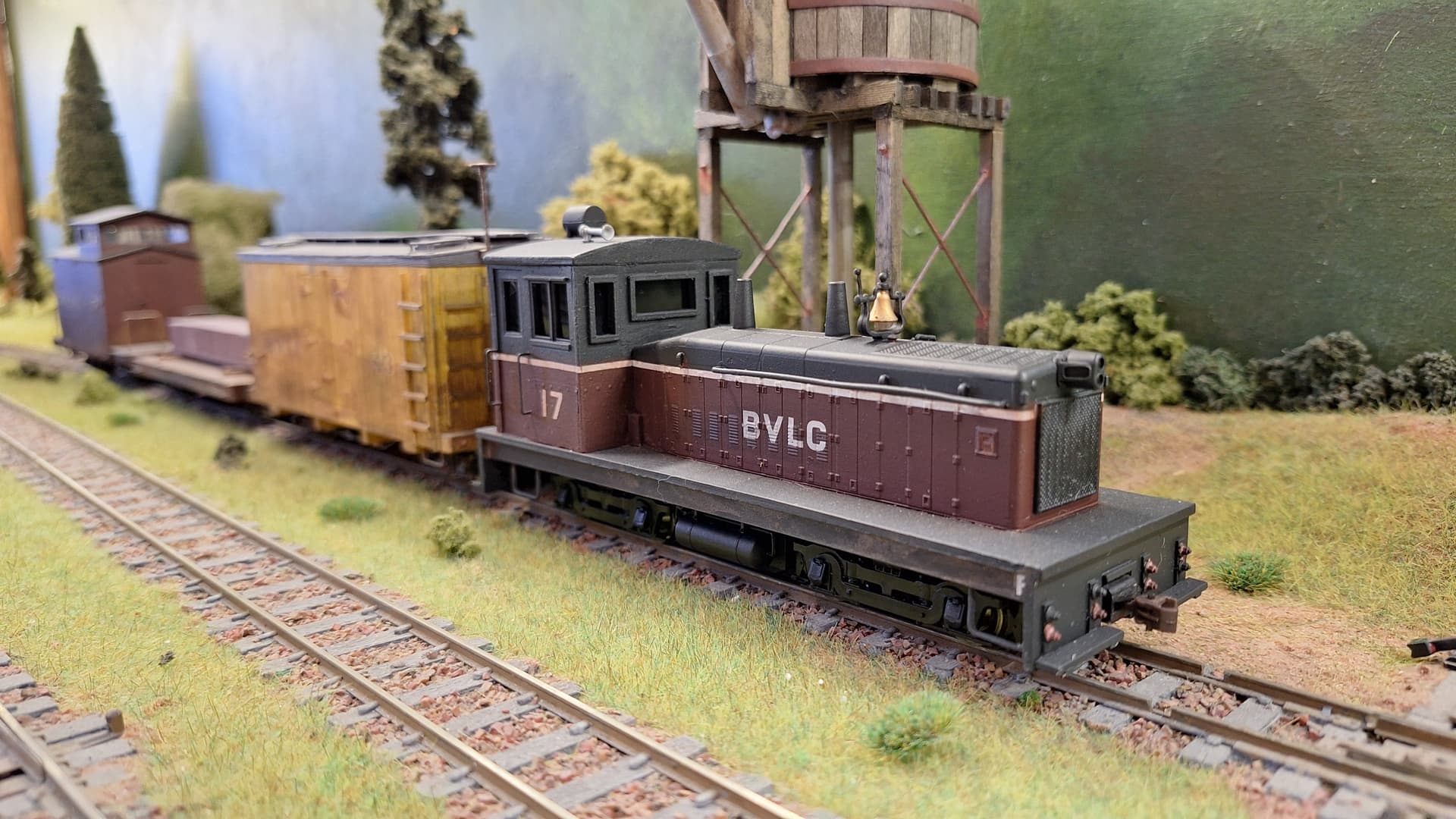 Some photos from today’s running. Number 17, which I built recently, pulls its first train - a supply run to logging camp B.