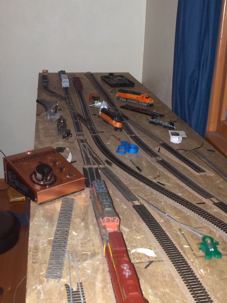 So now it’s MY fault you had to stop by the LHS on the way home??? I see you were able to swing the magic deal you were looking for with the AB set…now, if you learned by my example and stayed home from the train show, you could be working on your benchwork much like I am doing. After all, if you’re not home to work on it, the layout will never get started…